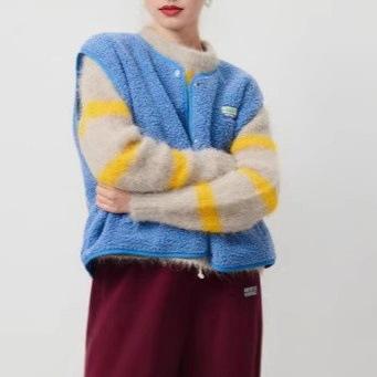 2025 Amazon Comercio Exterior Top Chaleco de Lana sin Mangas para Mujer Moda Transfronteriza Europea y Americana para Dama Primavera y Otoño Suelto Cruzado