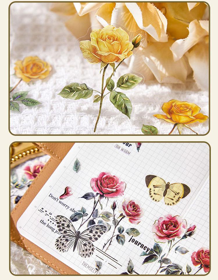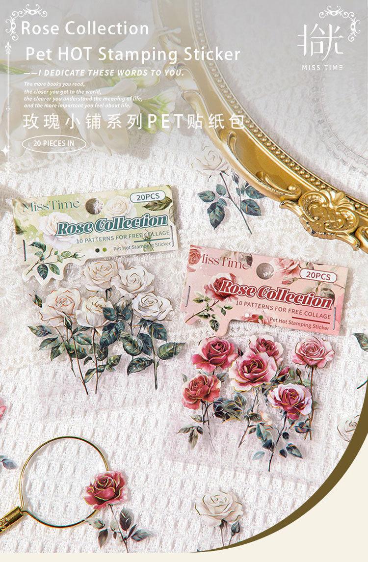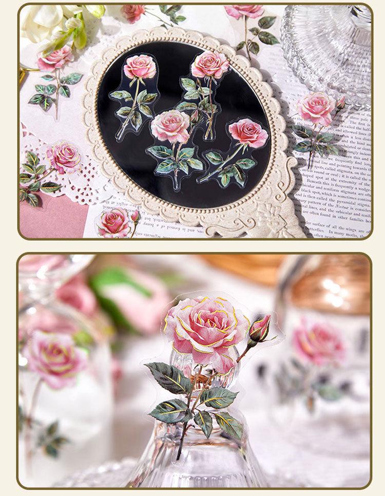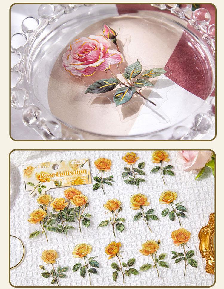 Paquete de Stickers para Mascotas Serie Tienda de Rosas Planta Estampado Dorado Floral Material Decorativo para Diario 20 Piezas en 6 Diseños