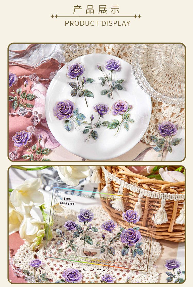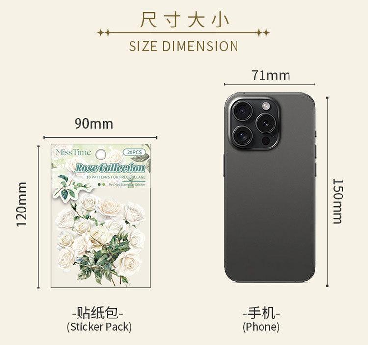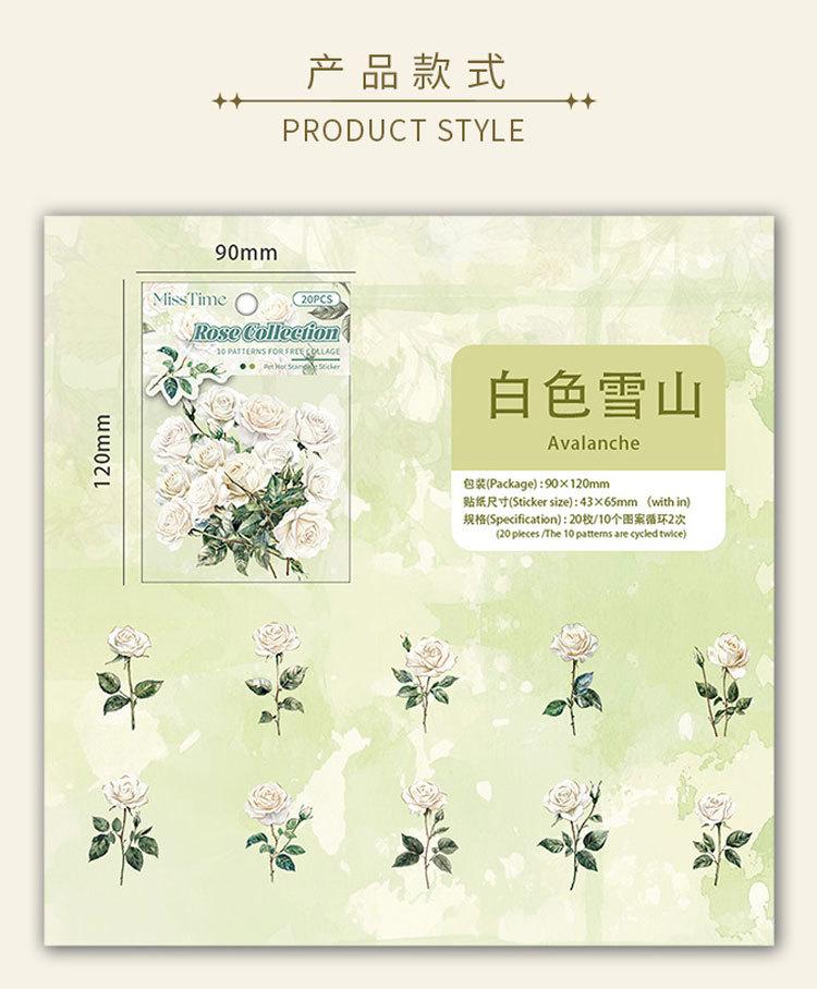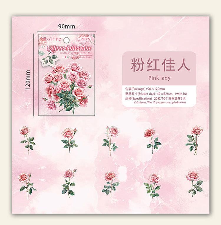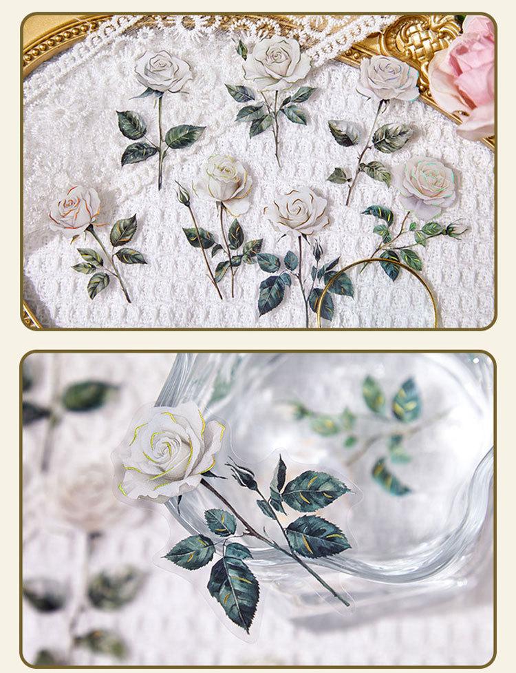 Paquete de Stickers para Mascotas Serie Tienda de Rosas Planta Estampado Dorado Floral Material Decorativo para Diario 20 Piezas en 6 Diseños