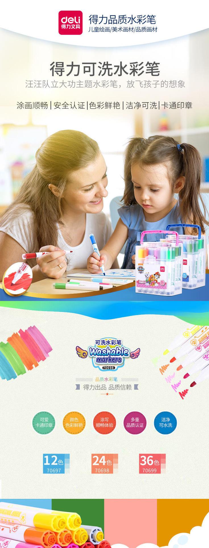 Set de Plumas de Acuarela con Sello Deli Niños de Jardín de Niños Estudiantes de Primaria Usan Lavable Seguro 24 Colores 36 Colores Plumas para Pintar