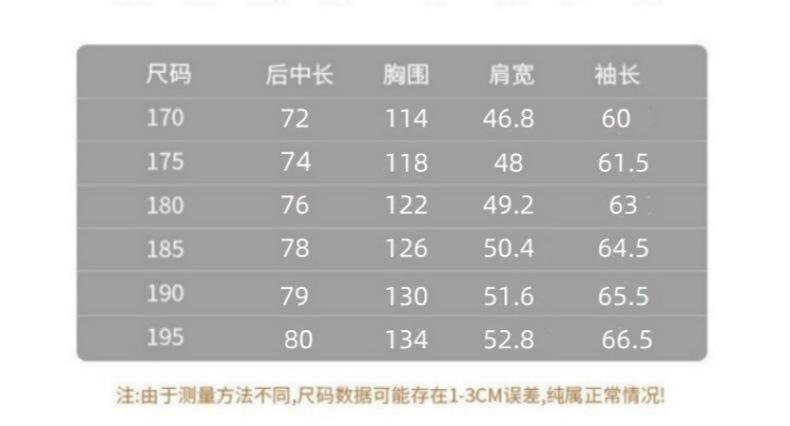 170/M(100-120 jin), 175/L(120-135 jin), 180/XL(135-150 jin), 185/2XL(150-165 jin), 190/3XL(165-180 jin), 195/4...