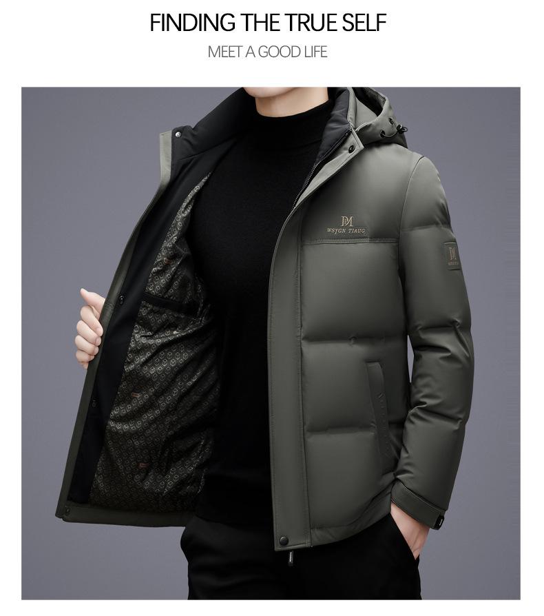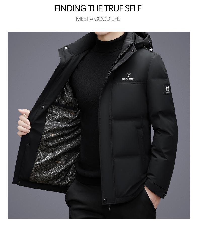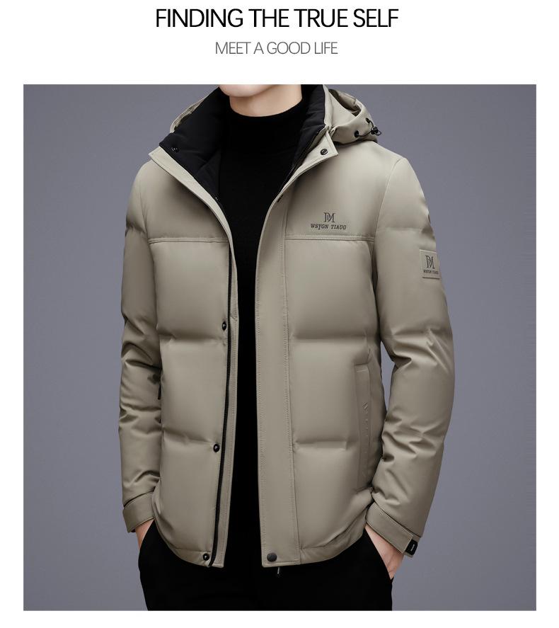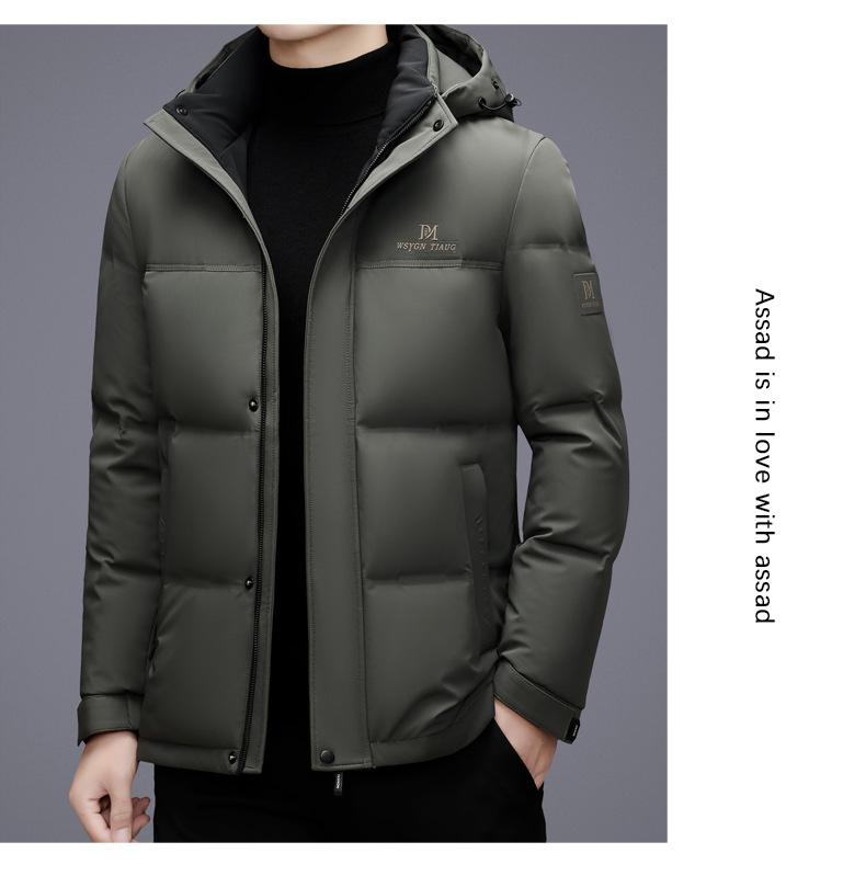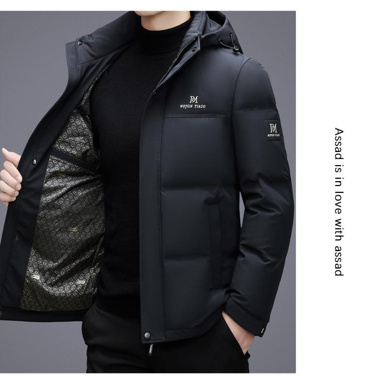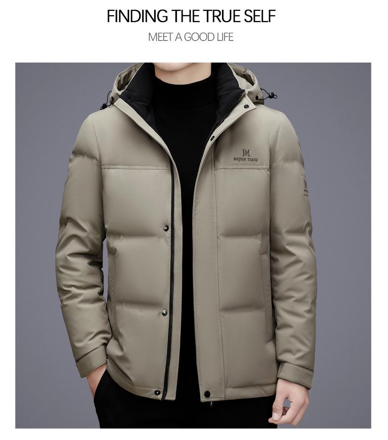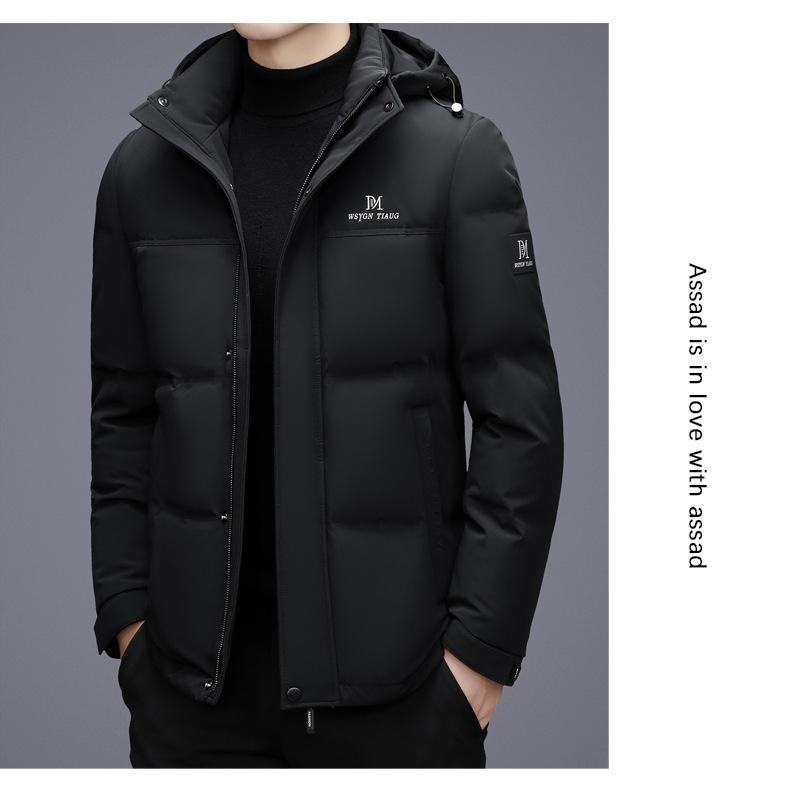 Laishibo Invierno Nuevo Chaqueta de Plumas Gruesa de Largo Medio para Hombre Plumón de Pato Blanco a Prueba de Frío Casual con Capucha para Hombre