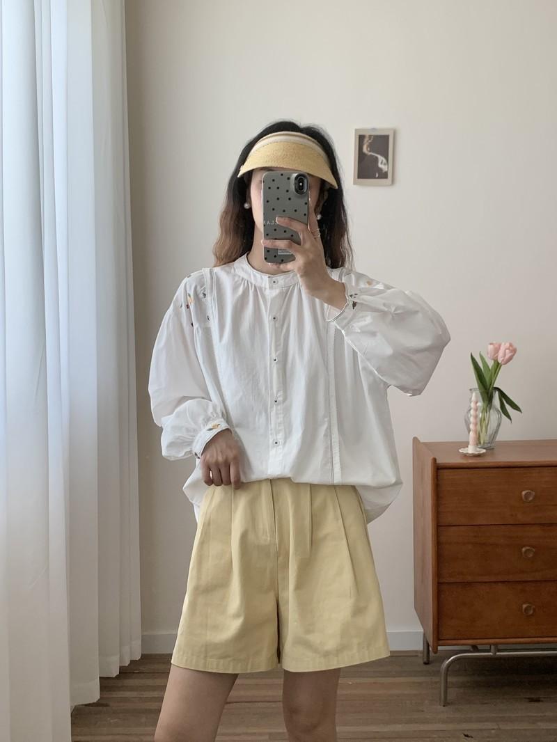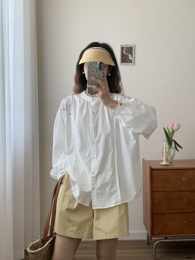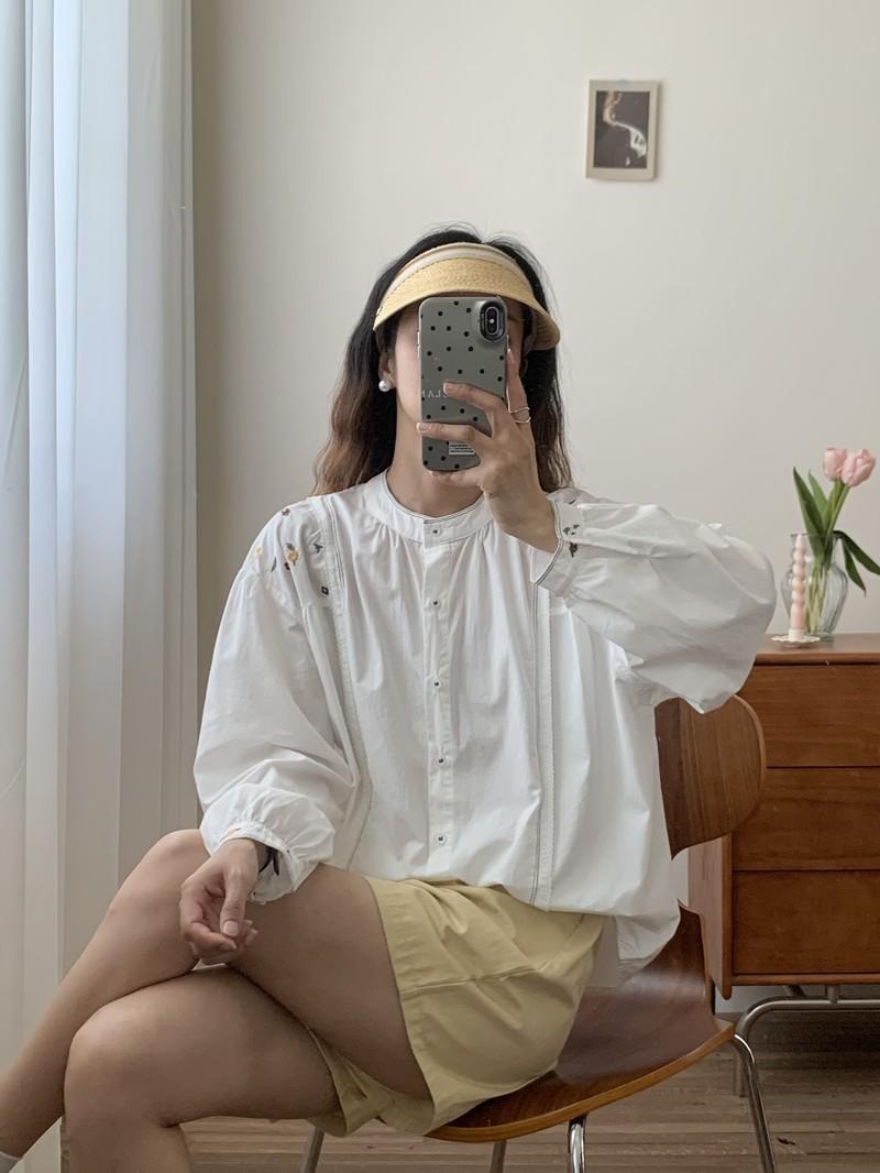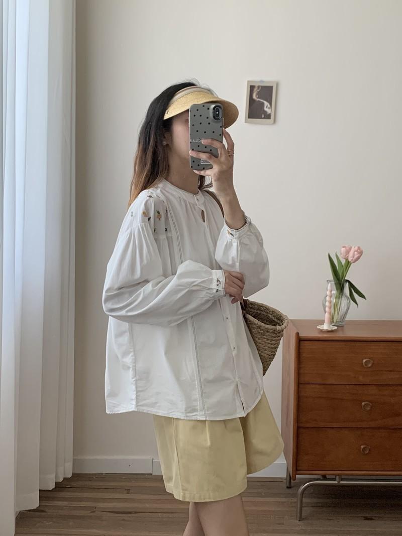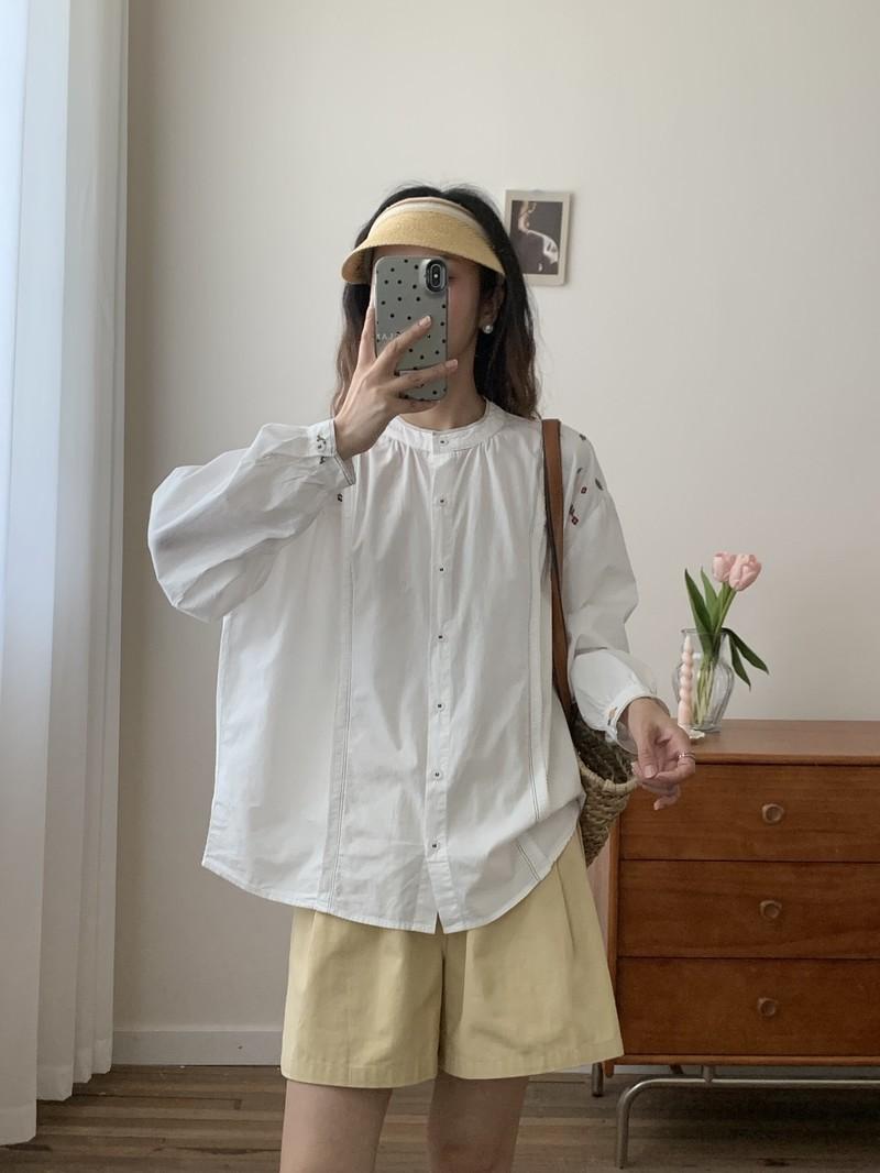 Tops de Otoño Coreano Nuevo Cuello Alto Bordado Suelto Cárdigan de Señora Camisa Manga Larga Tendencia al por Mayor