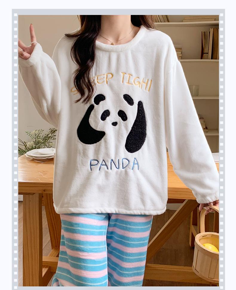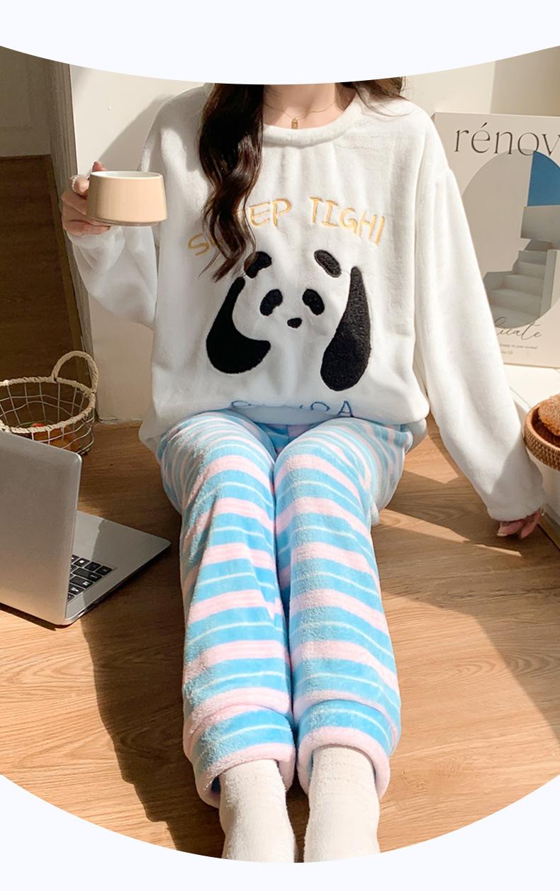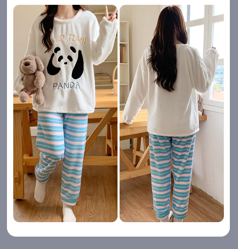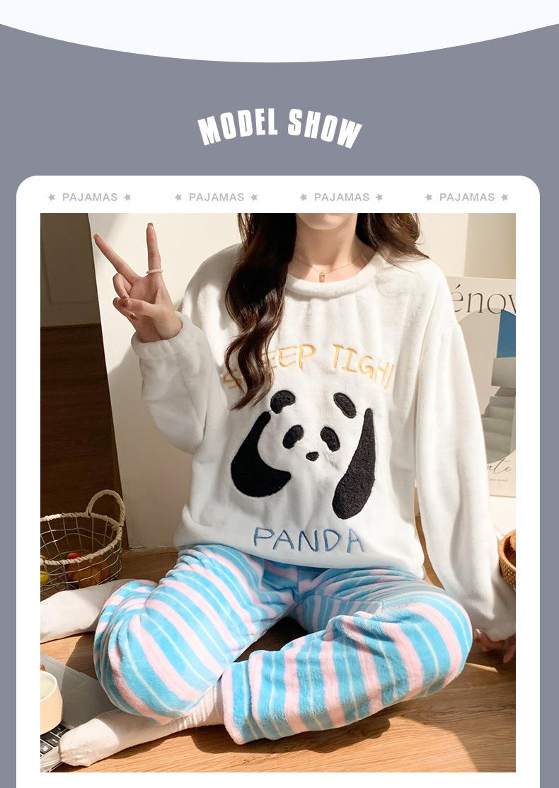 Pijama para Mujer Otoño e Invierno Vellón de Coral con forro polar Franela Engrosada Traje para Mujer Otoño e Invierno Ropa de Casa de Frutas Invierno