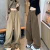 Pantalones casuales para mujer de franela de lana para hombre, moda, cintura alta, pierna ancha, pierna recta, culottes, otoño 2025 nuevo
