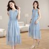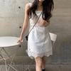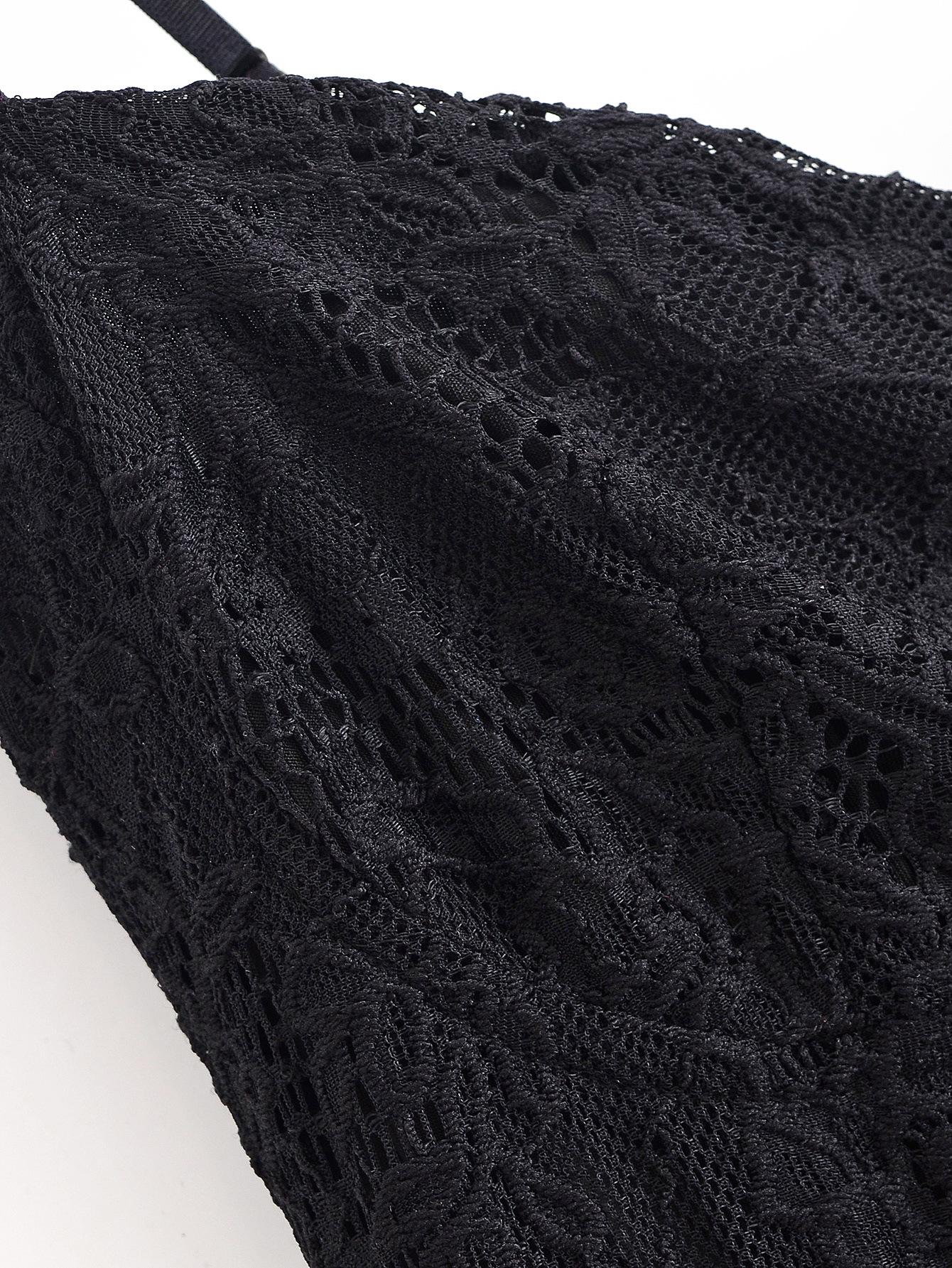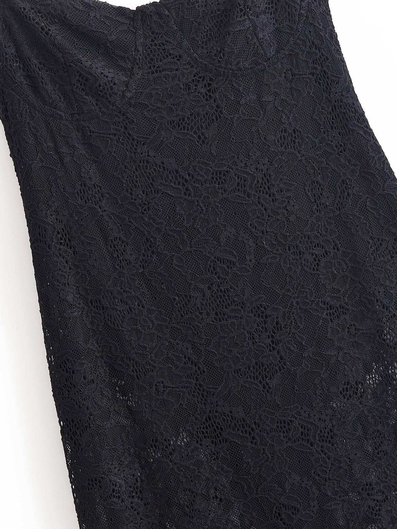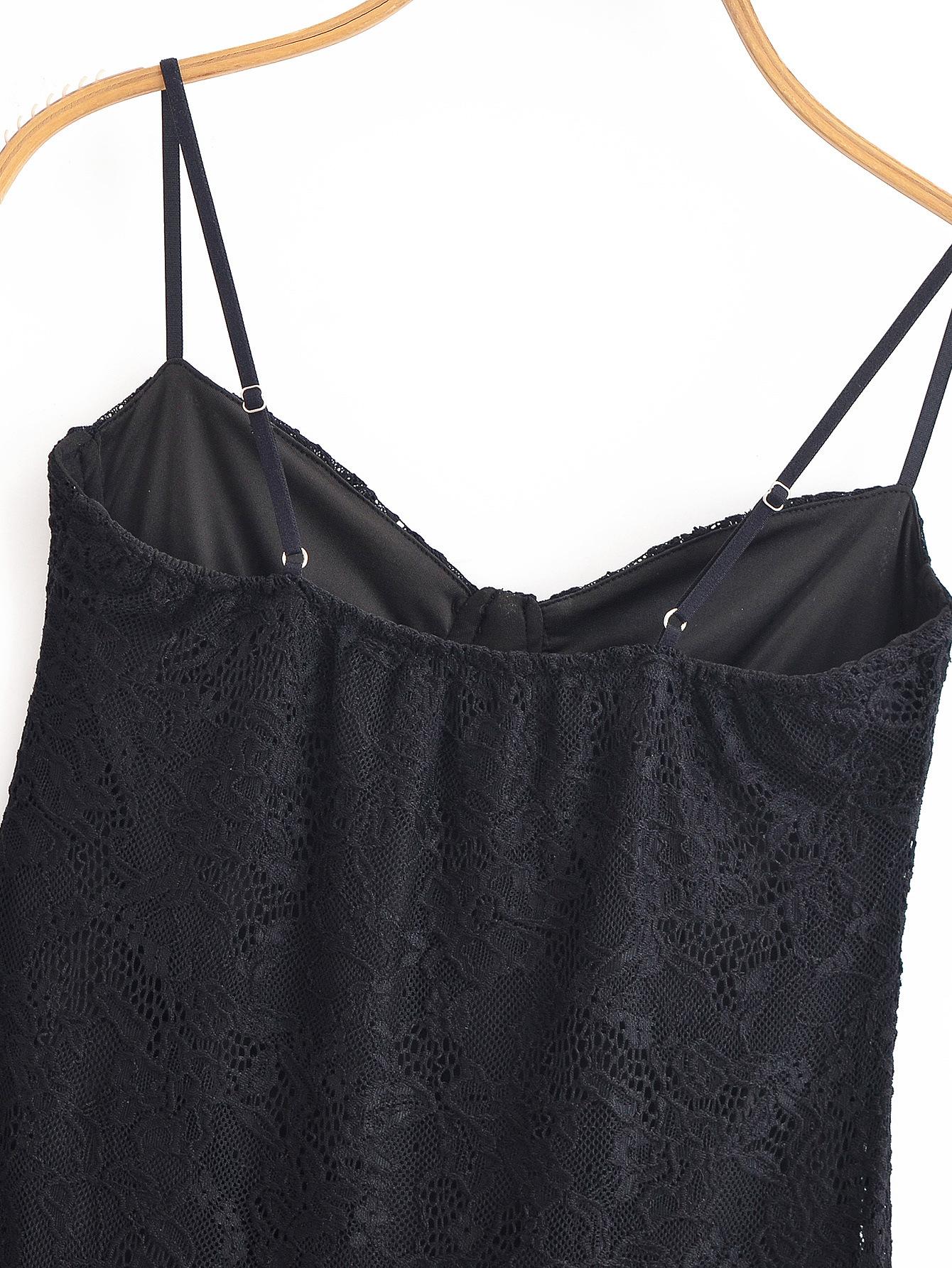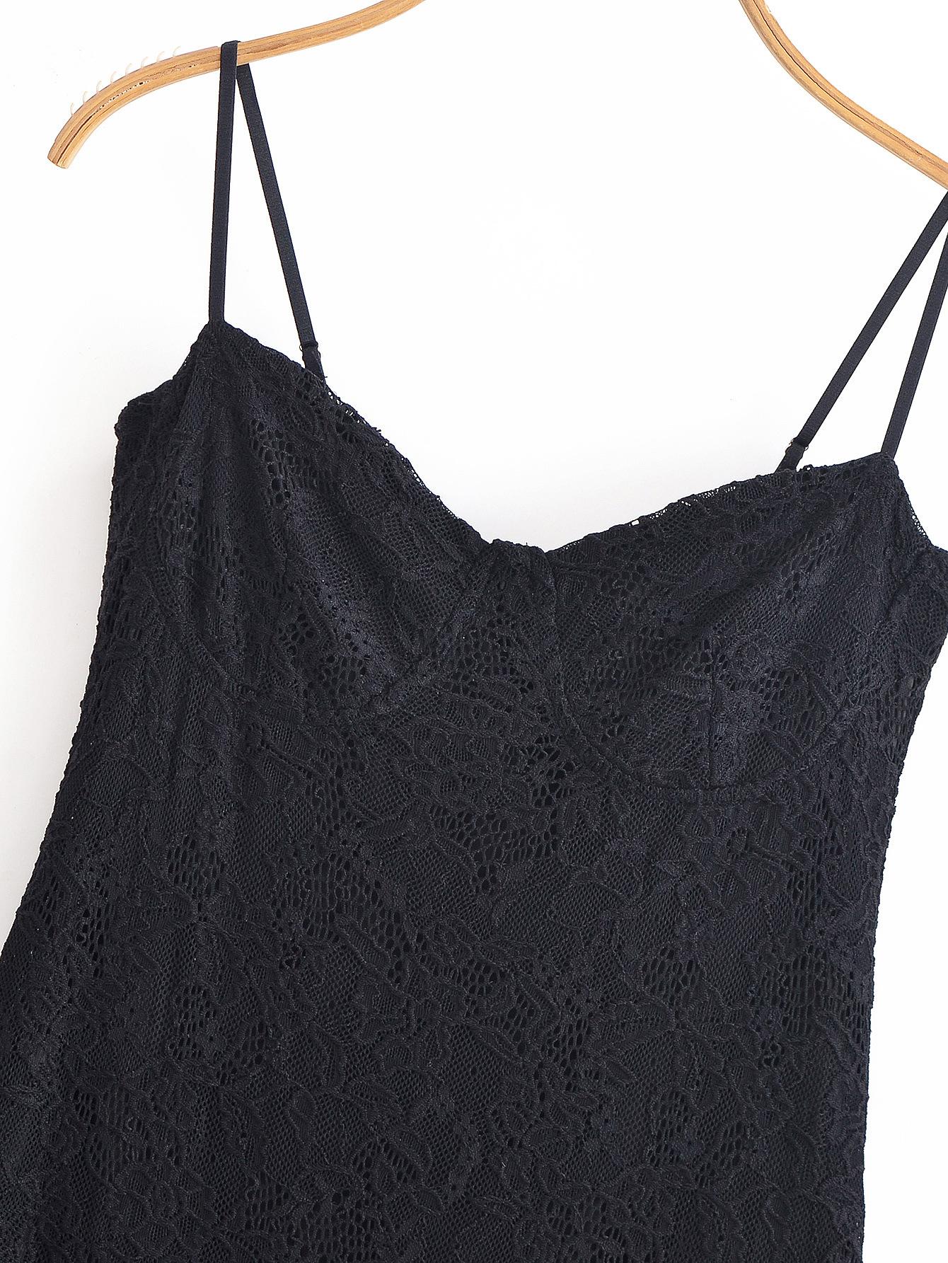 Vestido de Encaje Negro de Verano para Mujer de Estilo Europeo y Americano 2025 de Largo Medio con Tirantes Espagueti 11583 Color de la Imagen Patchwork Sin Mangas