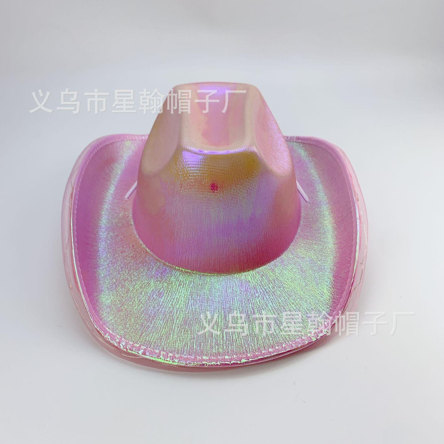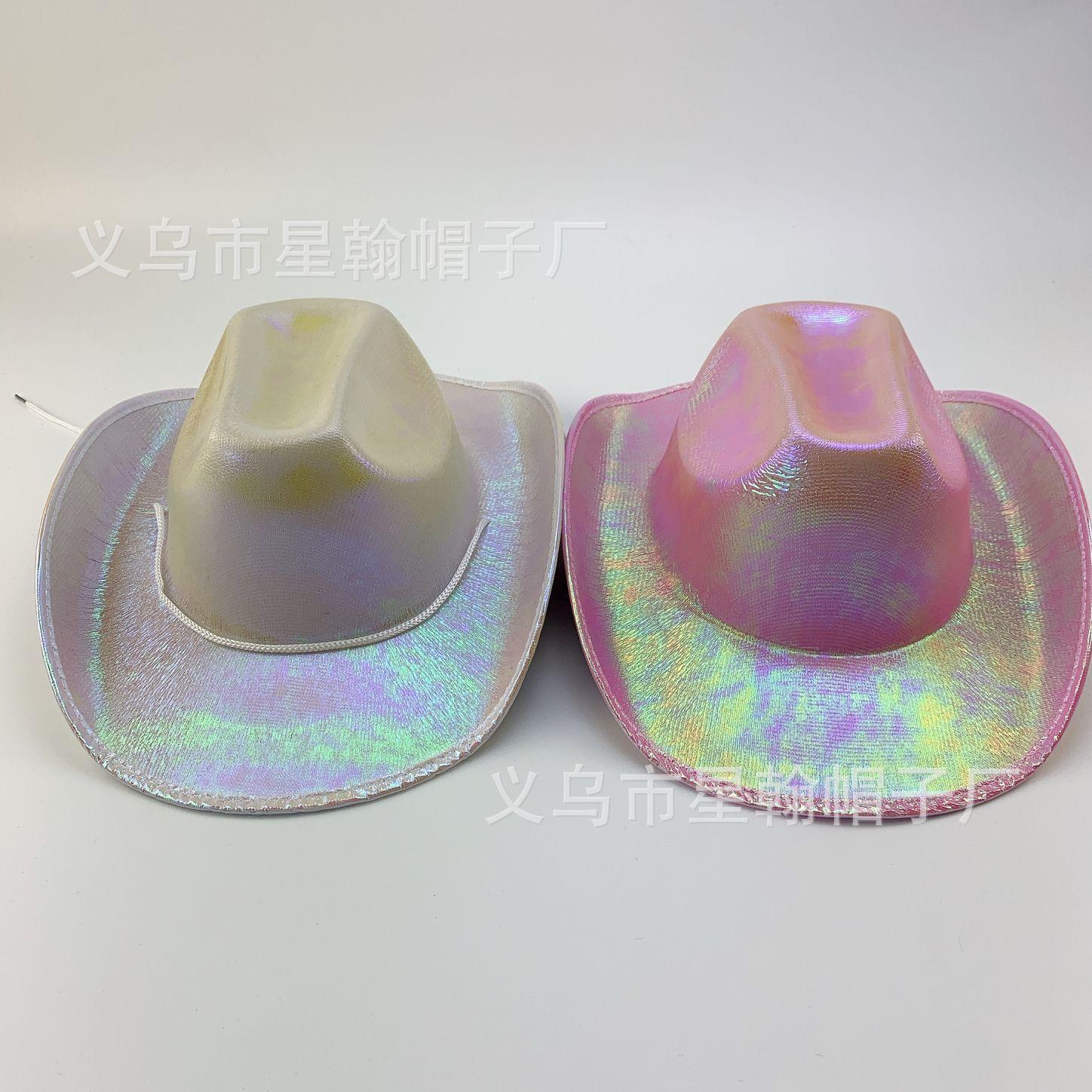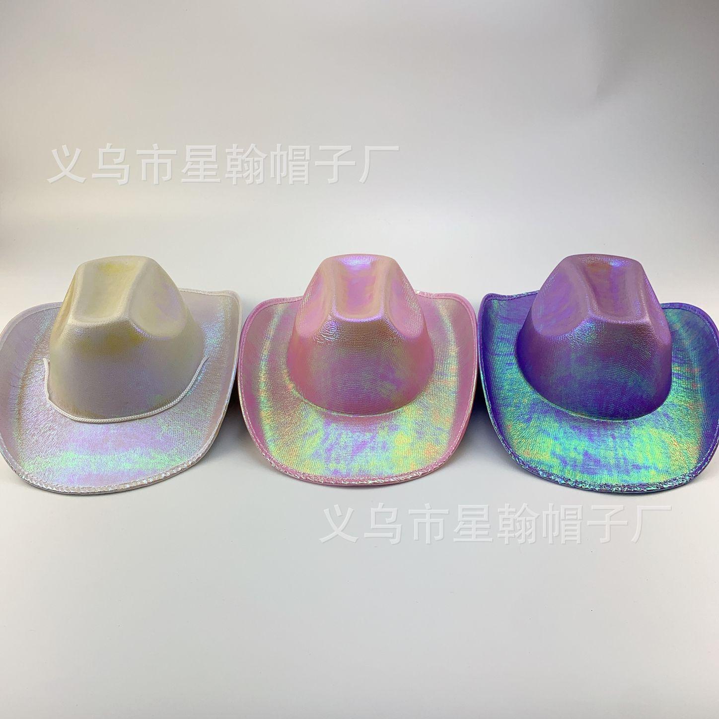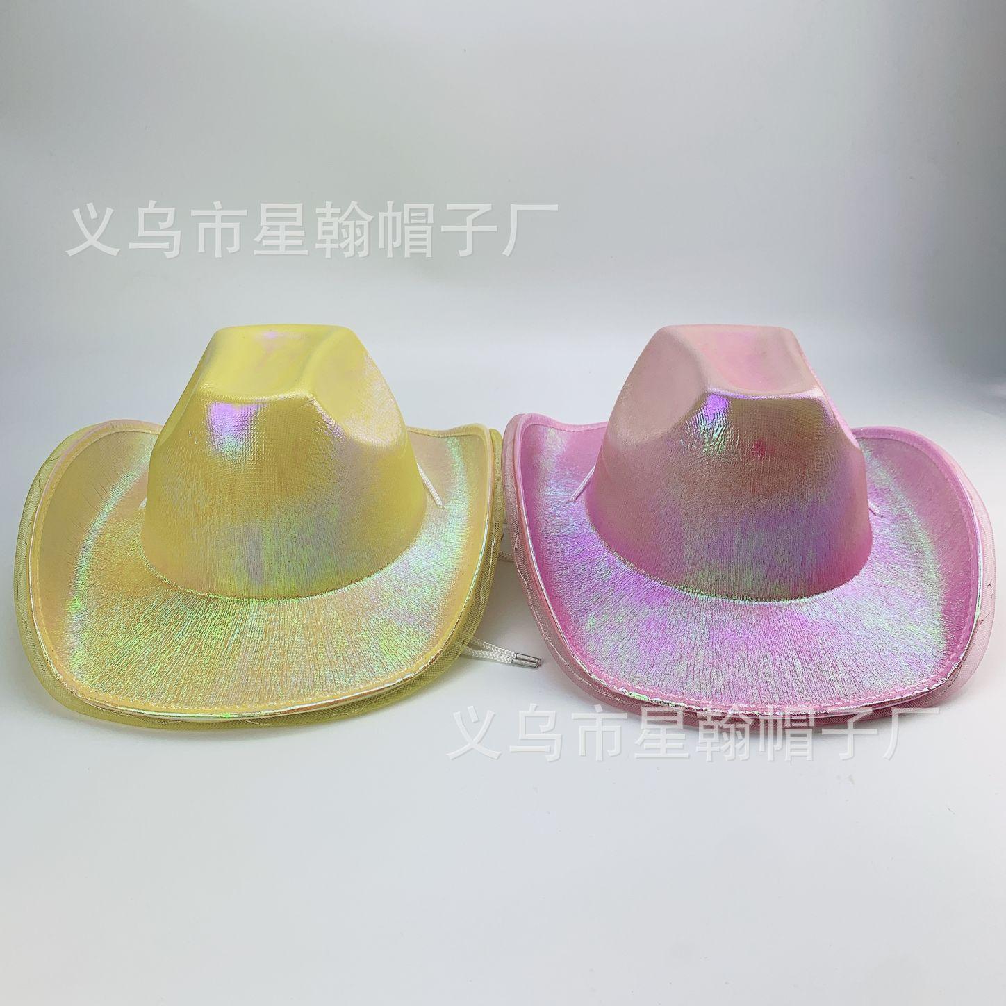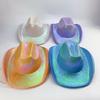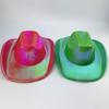 Venta al por mayor de fabricante Sombrero de vaquero occidental iridiscente Sombrero de vaquero espacial intermitente de neón Fiesta de carnaval Sombrero rosa arcoíris