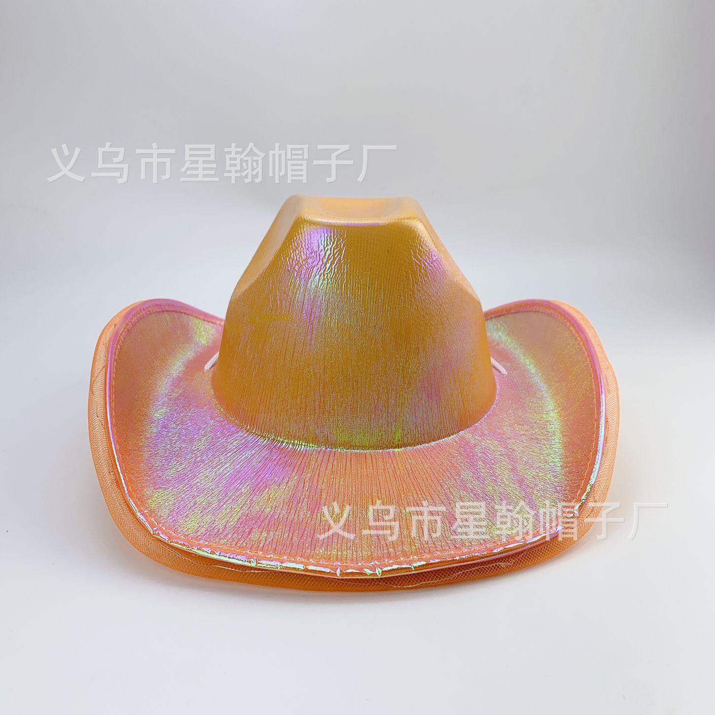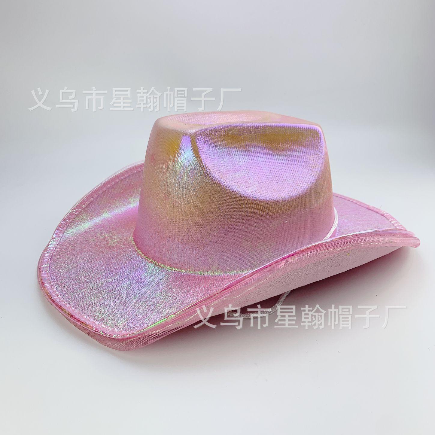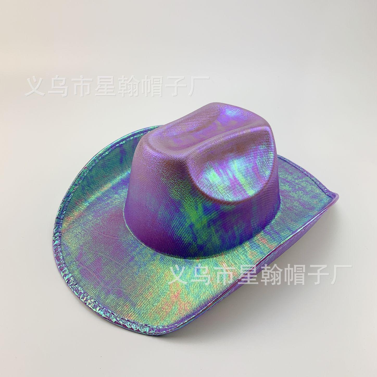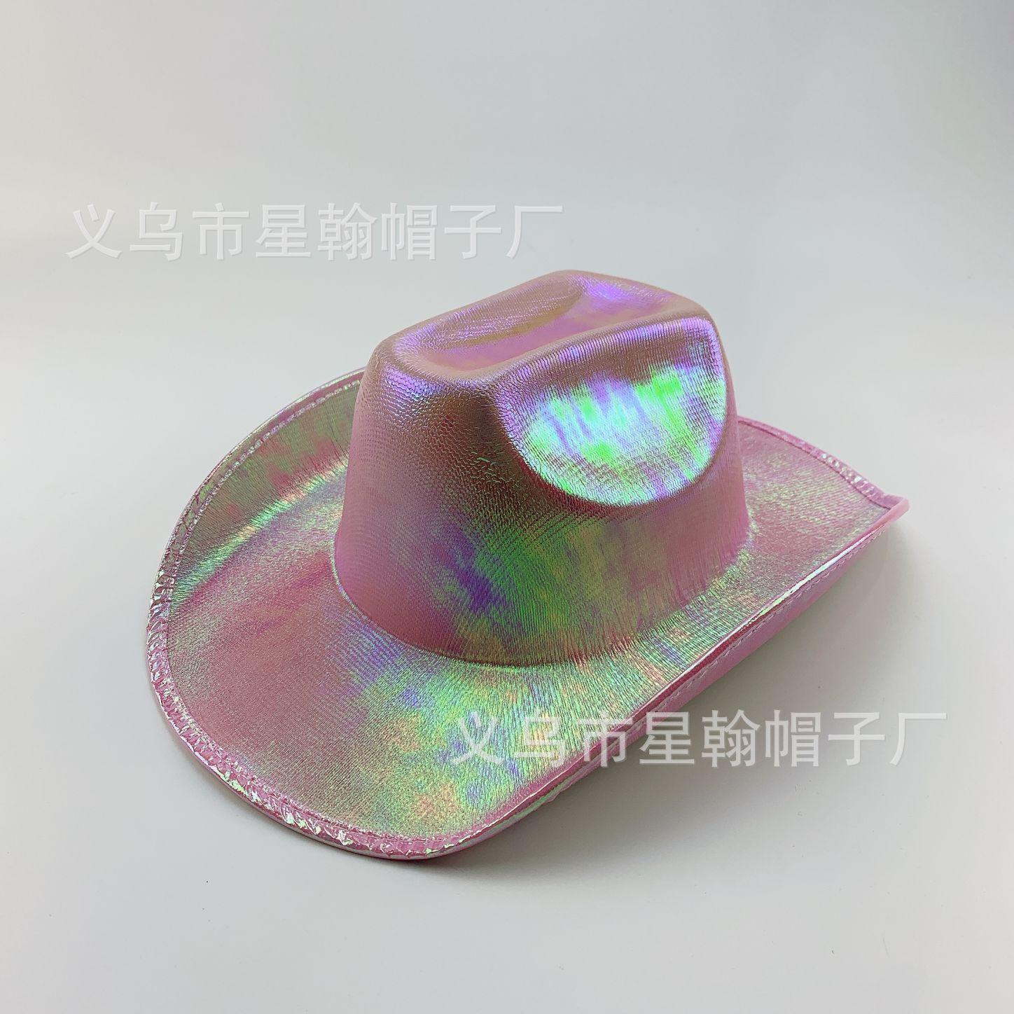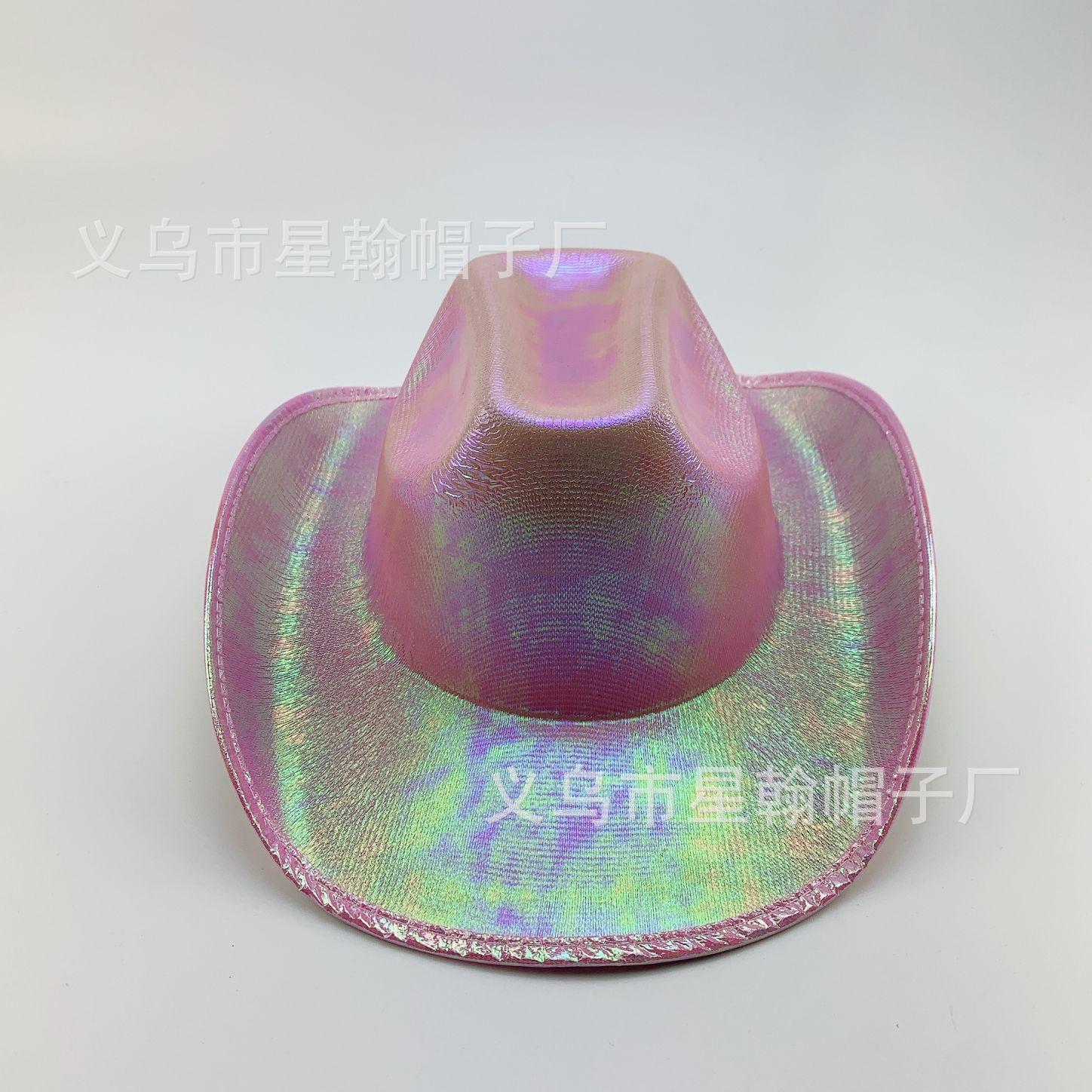 Venta al por mayor de fabricante Sombrero de vaquero occidental iridiscente Sombrero de vaquero espacial intermitente de neón Fiesta de carnaval Sombrero rosa arcoíris