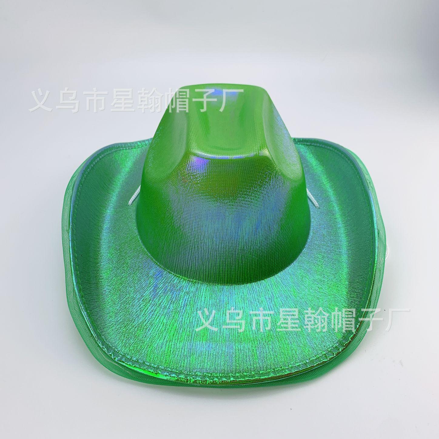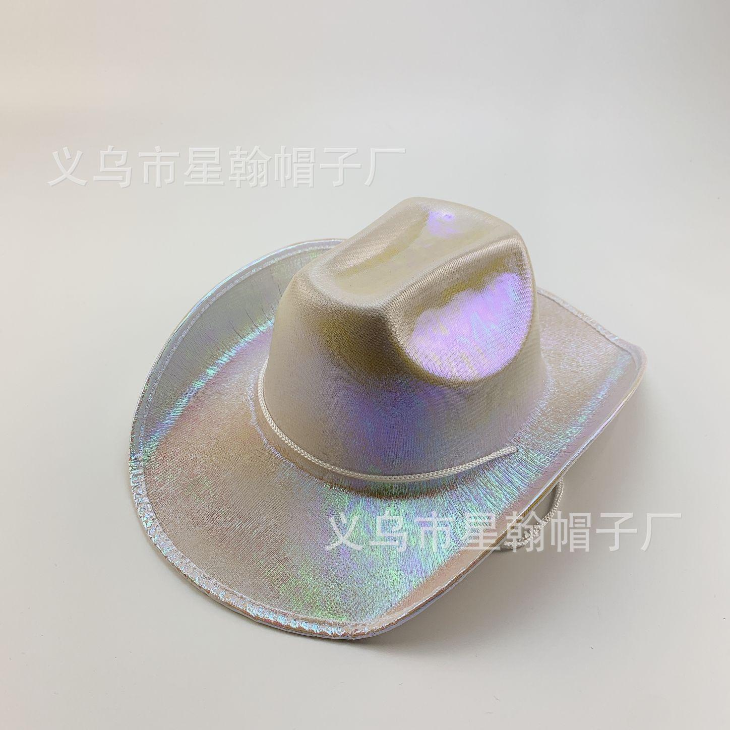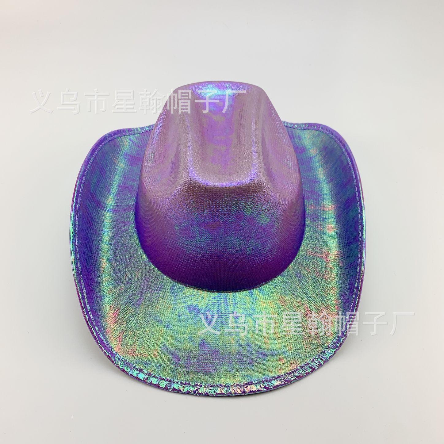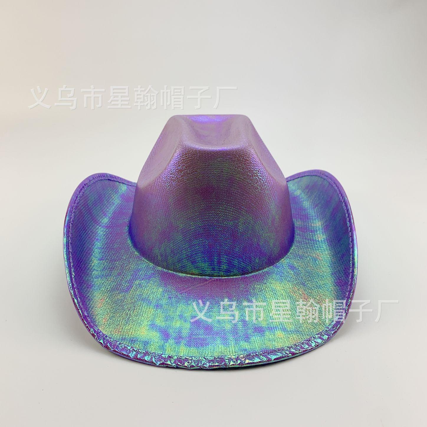 Venta al por mayor de fabricante Sombrero de vaquero occidental iridiscente Sombrero de vaquero espacial intermitente de neón Fiesta de carnaval Sombrero rosa arcoíris