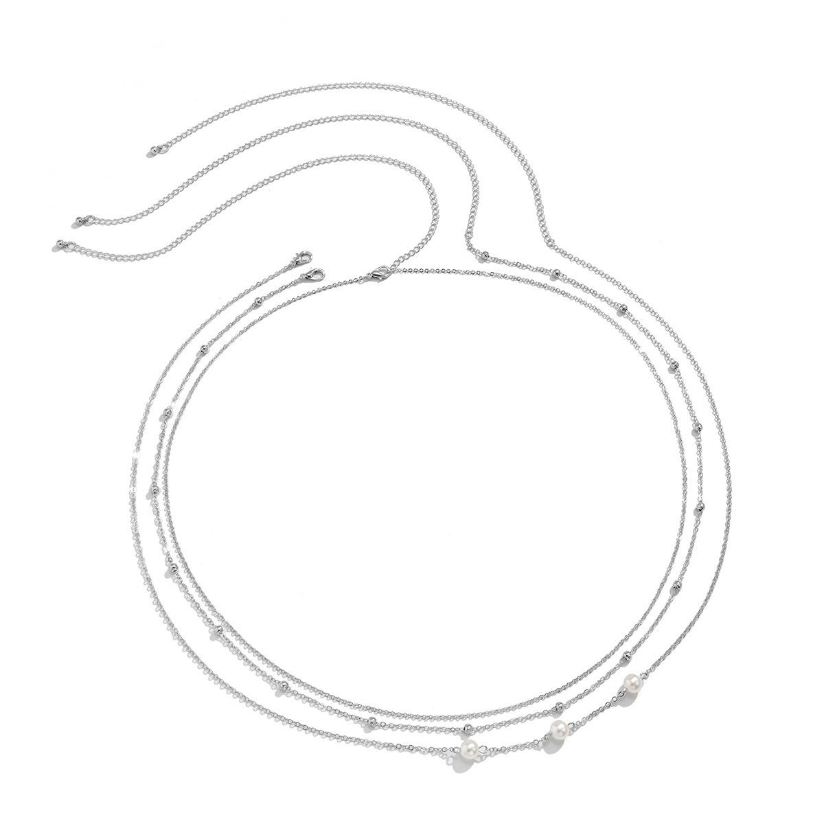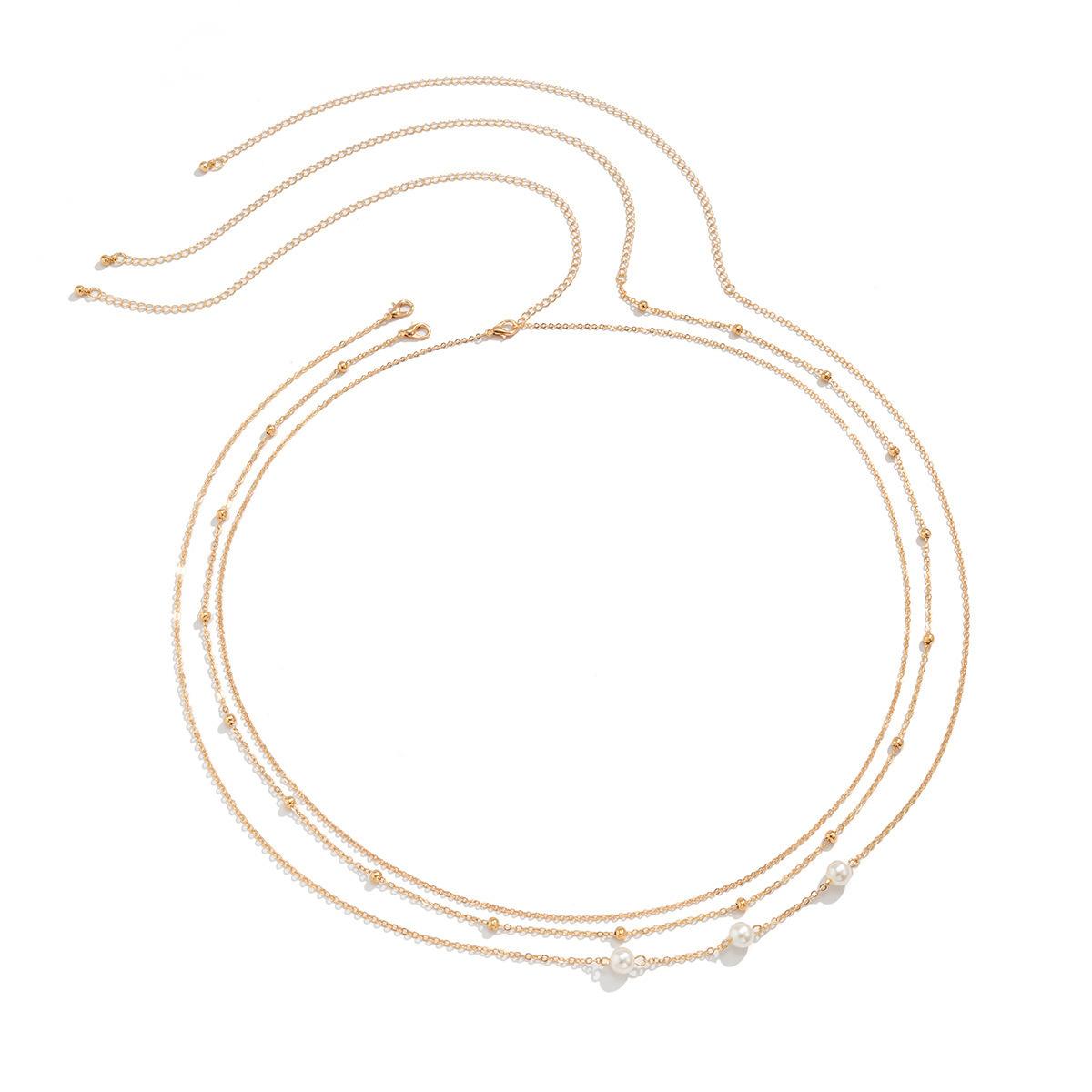 Joyería europea y americana de gran venta, temperamento, cadena metálica, sexy, multicapa, cadena de cintura de perlas, simple y versátil, cadena corporal al por mayor