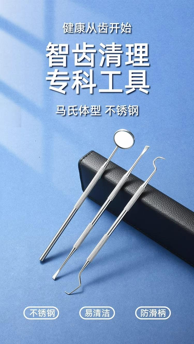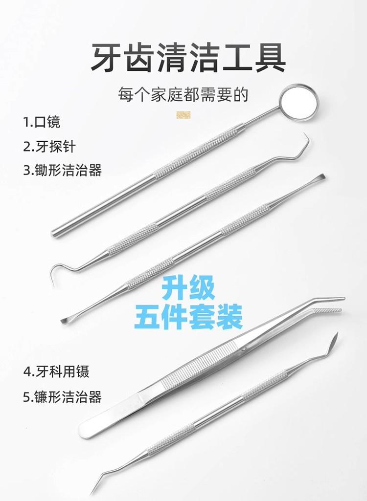 tweezers, Anti-fog dental mirror, Angle probe, Hoe type tooth cleaner, Sickle type tooth cleaner, Tooth stain ...