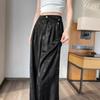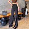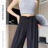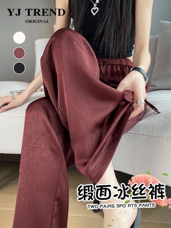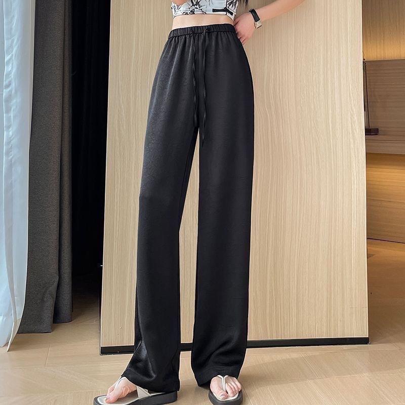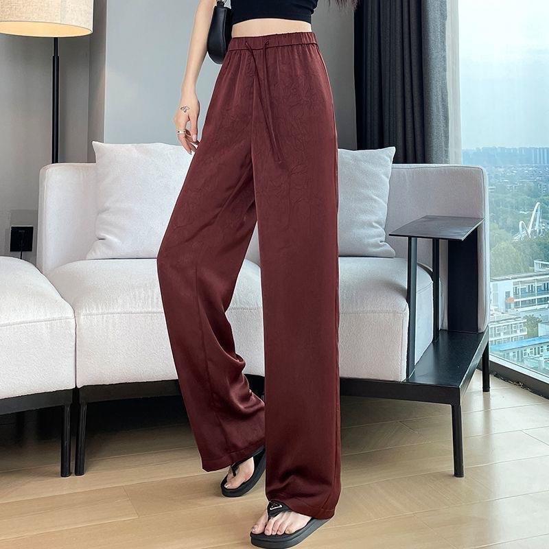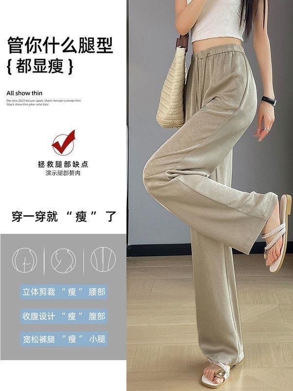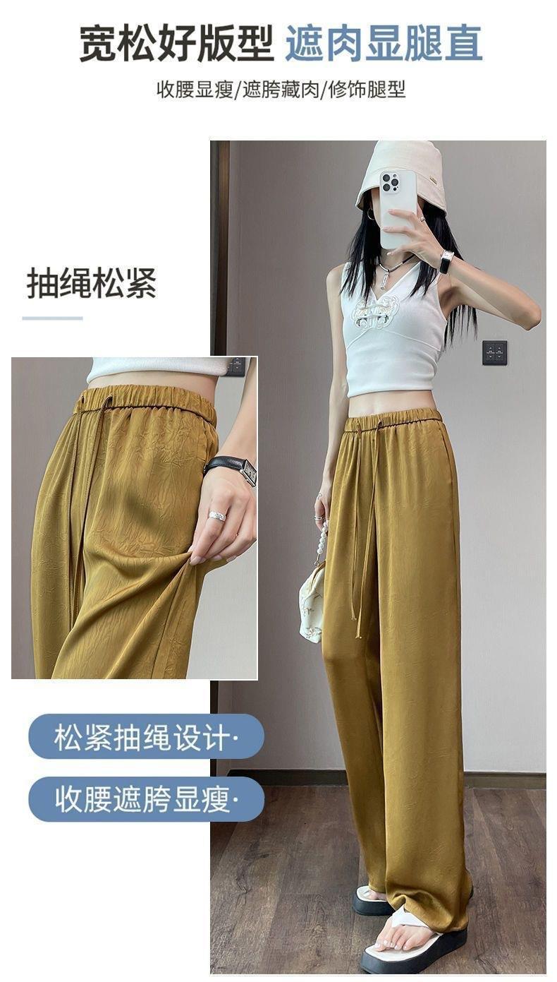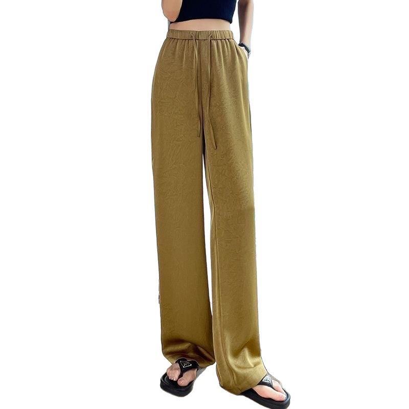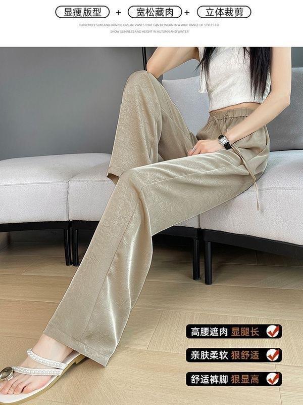 Pantalones casuales drapeados de cintura alta para mujer, pierna recta, estilo chino nuevo, seda helada estrecha de alta gama, adelgazantes, satén ancho estilo chino