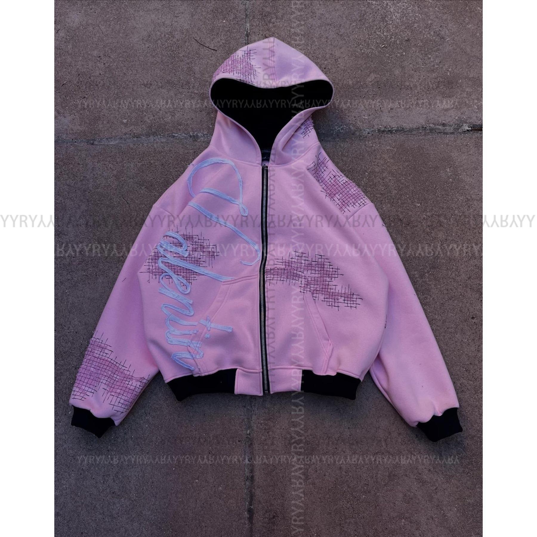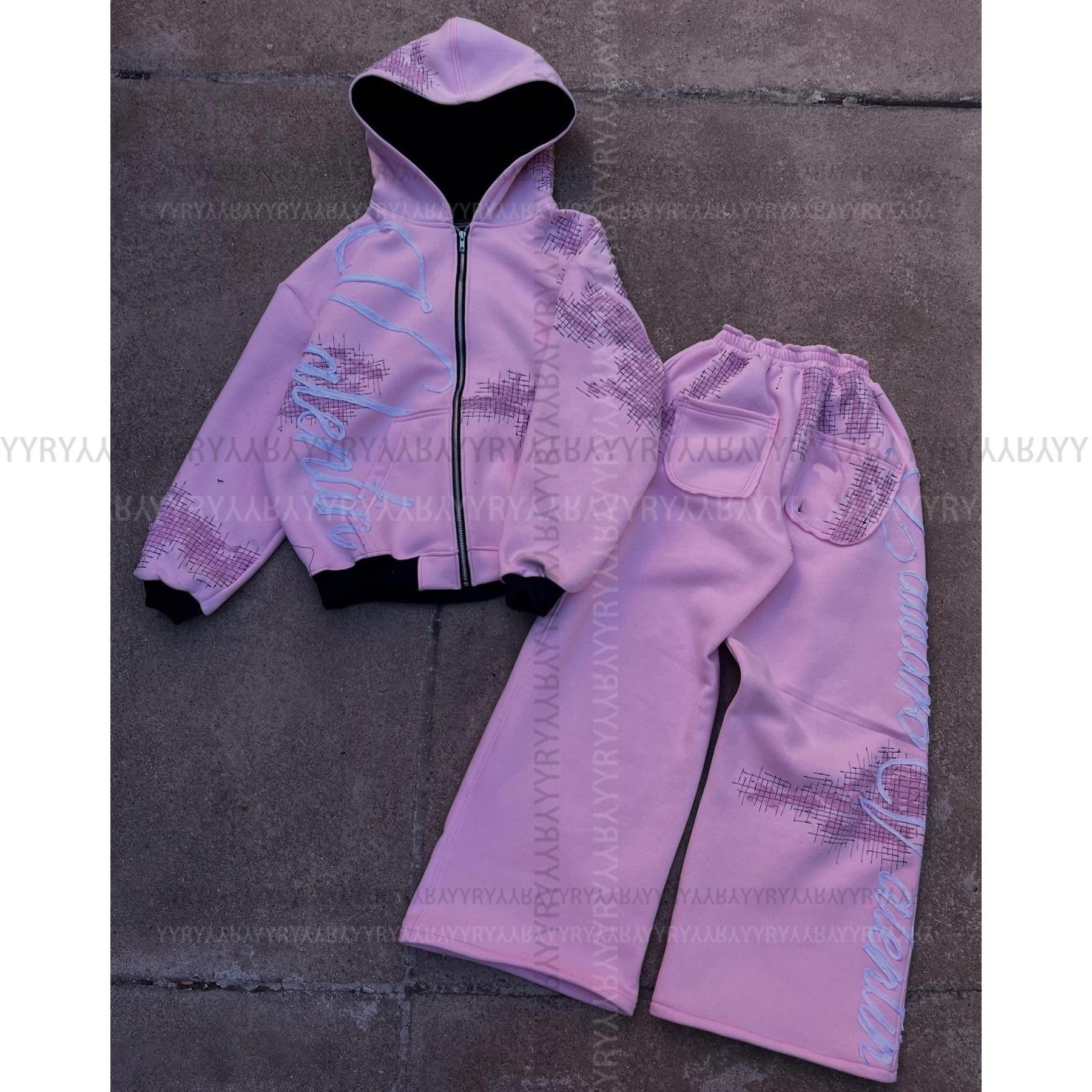 Europeo y Americano ins comercio exterior personalidad estampado sudadera con capucha con cremallera conjunto de pantalones deportivos manga larga jersey sudadera con capucha chaqueta retro y2k