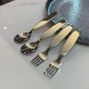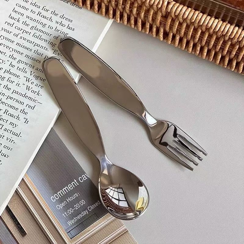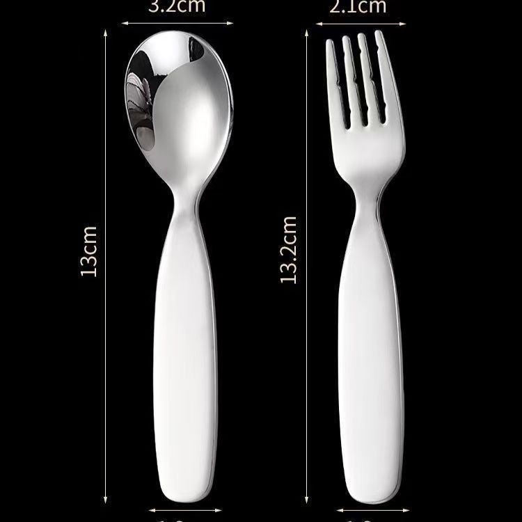 Acero Inoxidable Engrosado Mango Ancho Tenedor Cuchara Cuchara Redonda para Postre Hogar Cuchara para Arroz de Bebé Tenedor para Fruta Juego de Cucharas para Niños