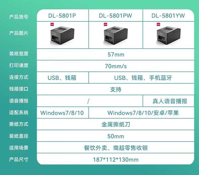 Impresora térmica de recibos Deli DL-5801PW mayordomo de pedidos para llevar impresora automática de pedidos al por mayor