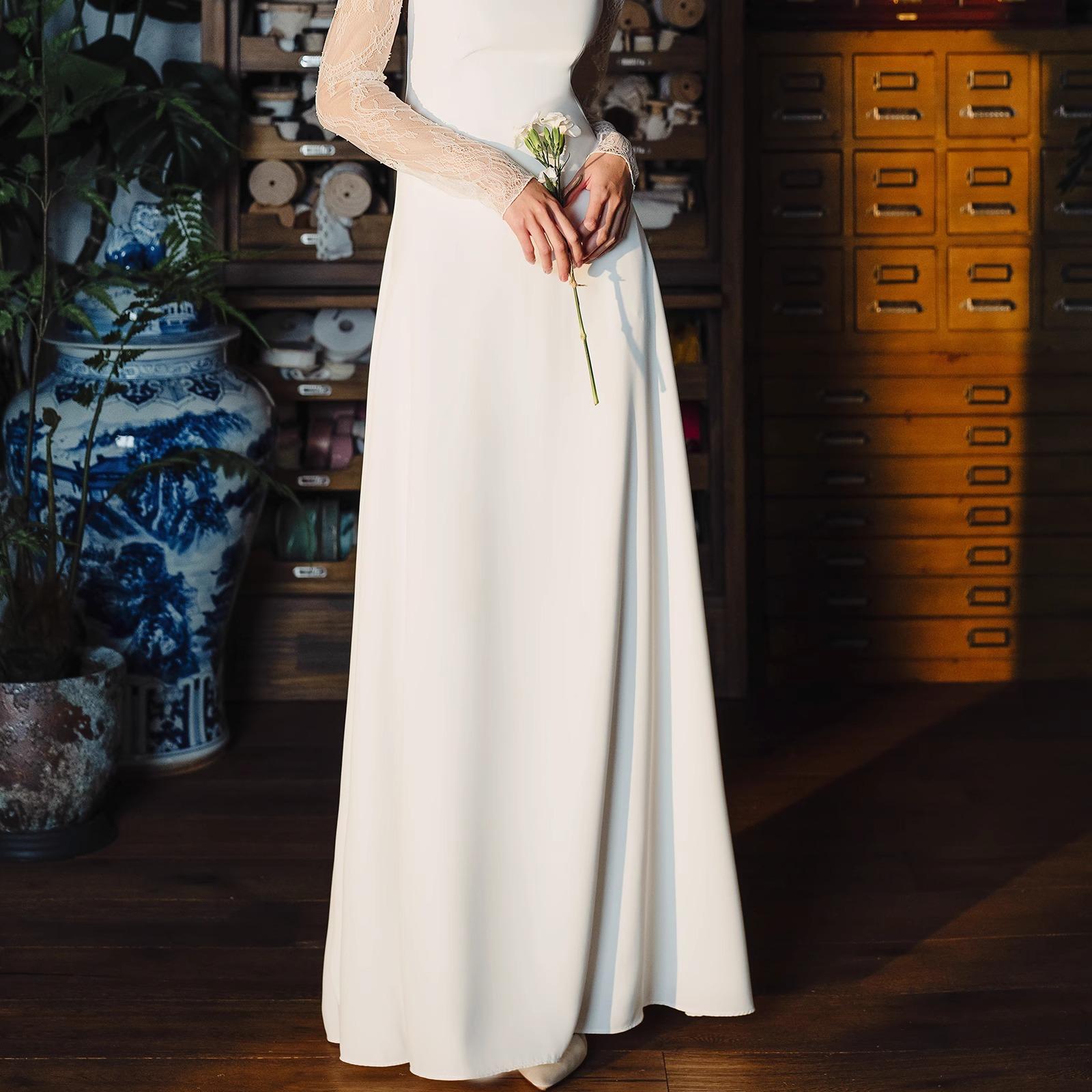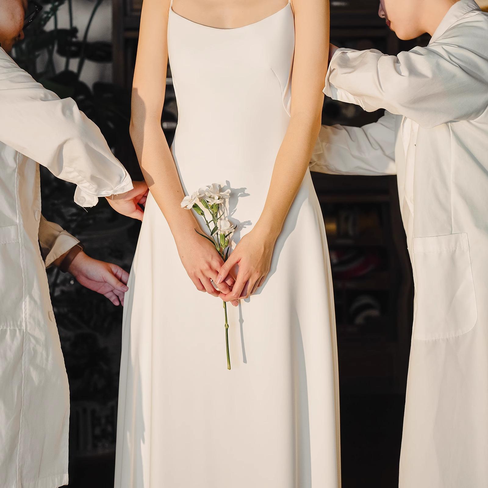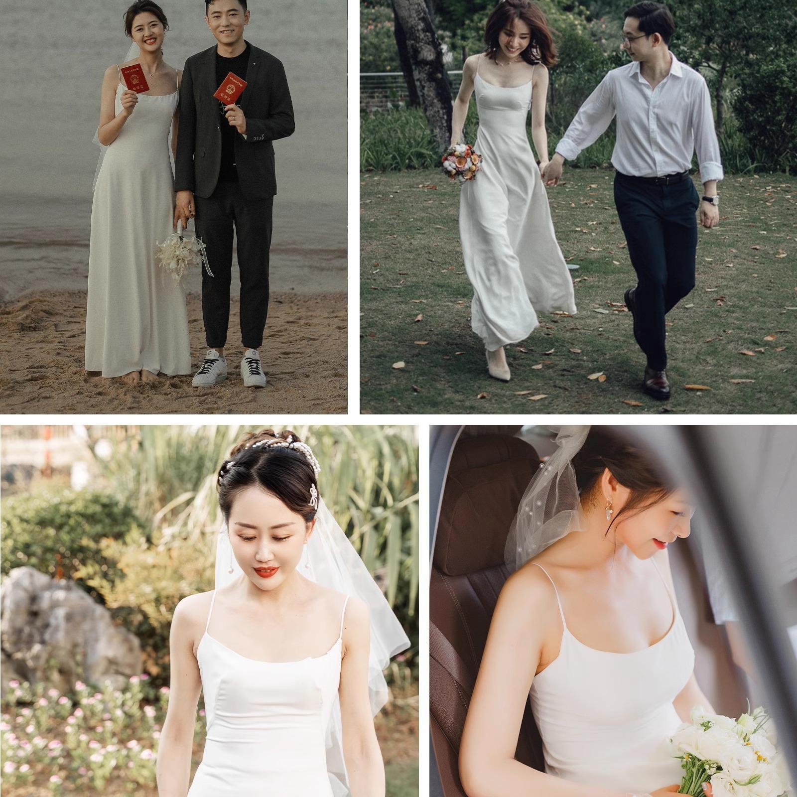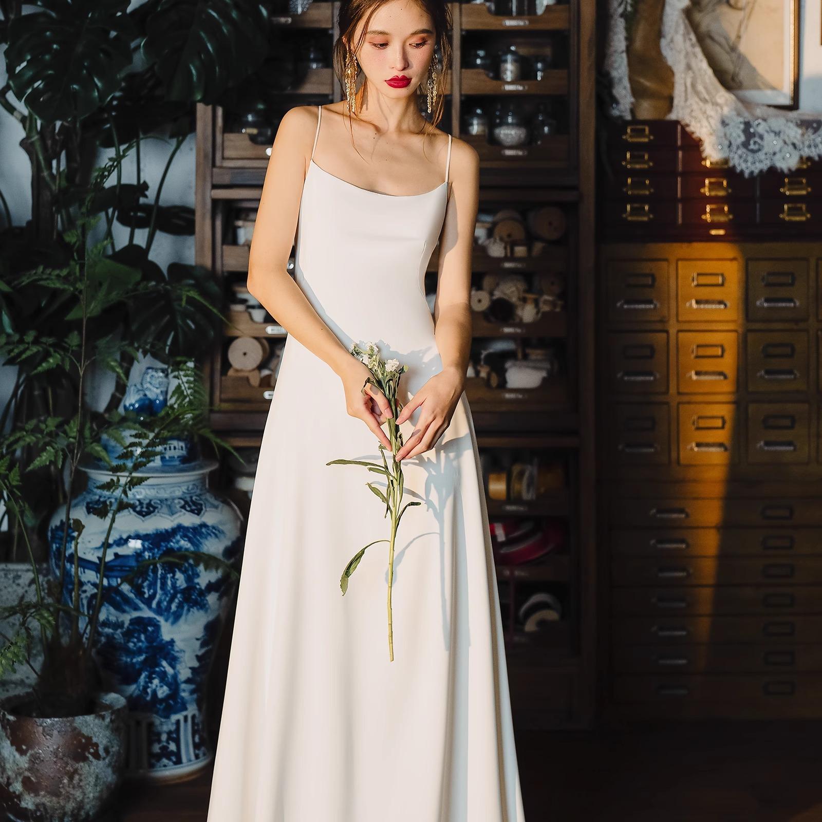 Vestido de Noche Ligero para Boda 2025 Nuevo Vestido Blanco de Licencia Nupcial Vestido Blanco Vestido de Boda Francés con Tirante