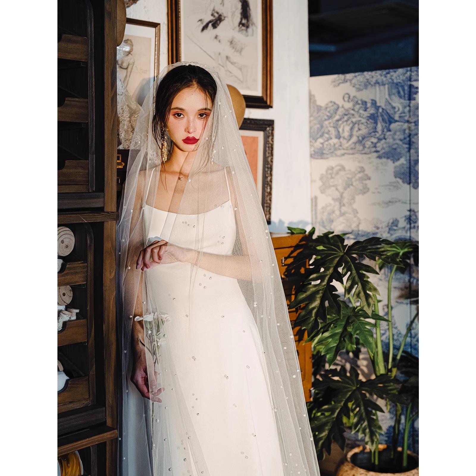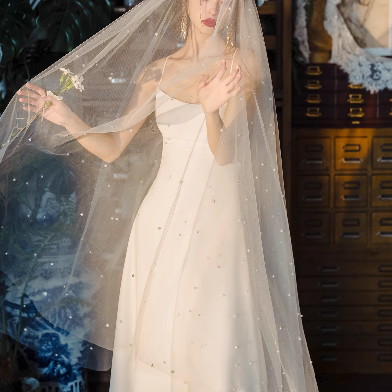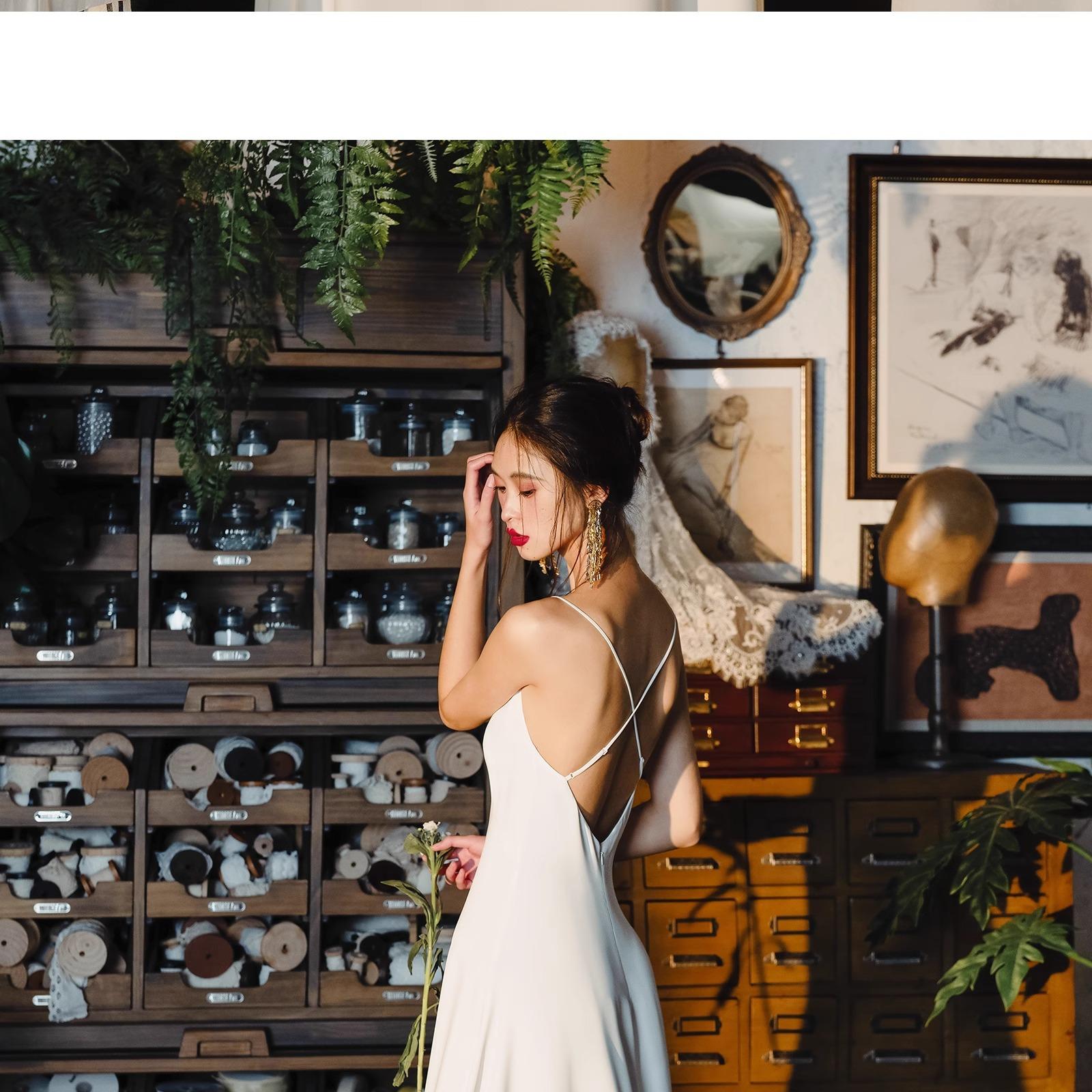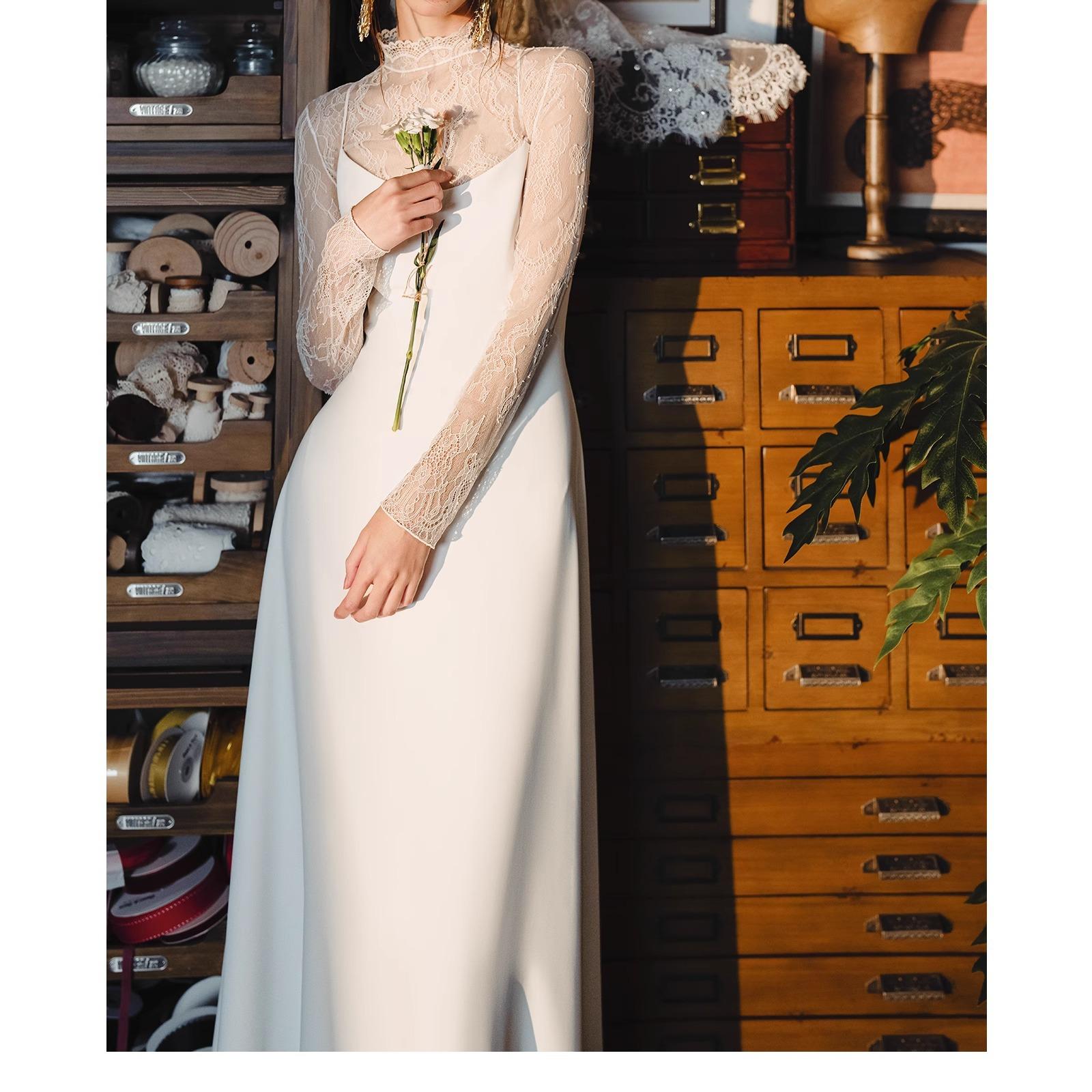 Vestido de Noche Ligero para Boda 2025 Nuevo Vestido Blanco de Licencia Nupcial Vestido Blanco Vestido de Boda Francés con Tirante