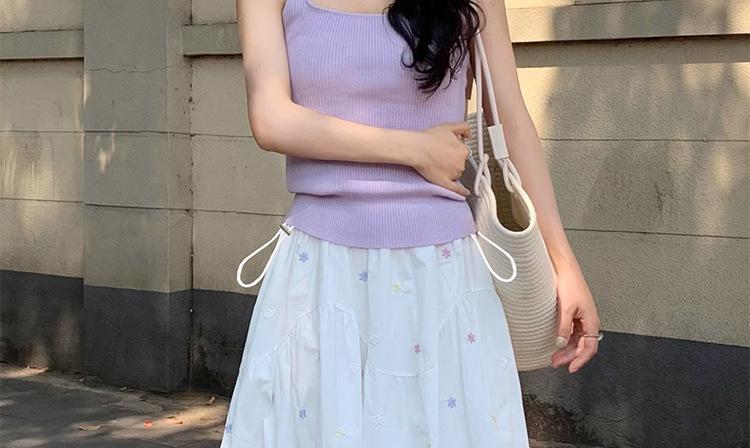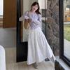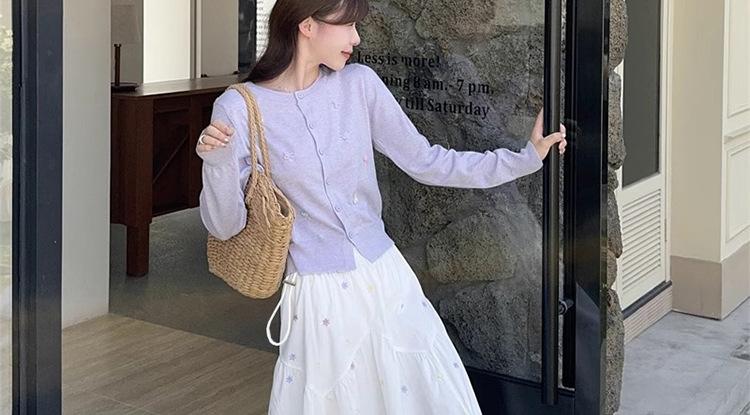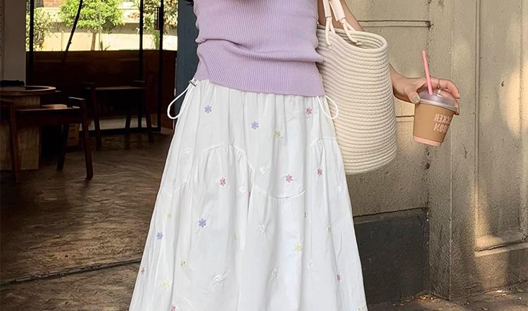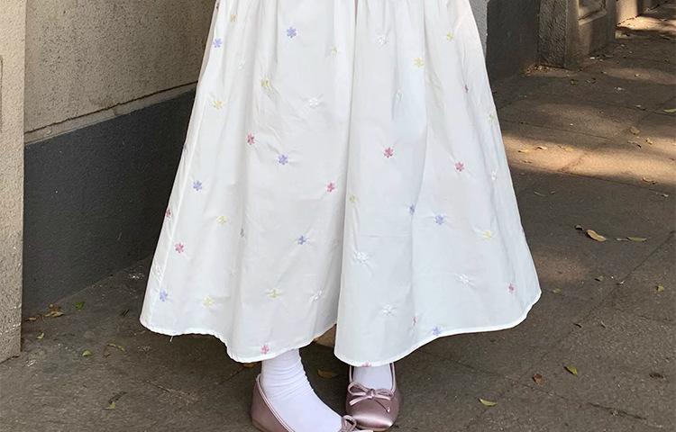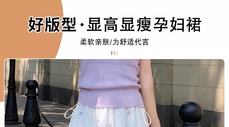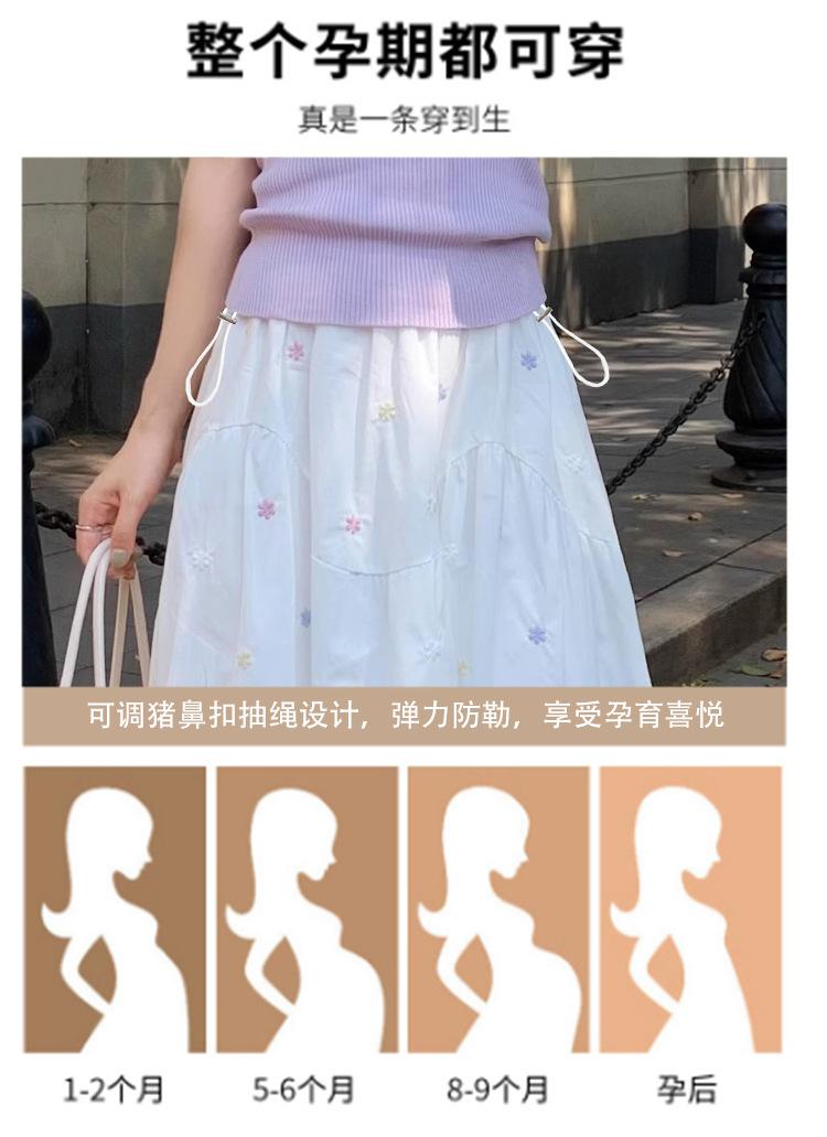 Falda de Maternidad 2025 Verano Nuevo Estilo Cintura Alta Suelta Línea A Estilo Suave Falda Bordada Floral