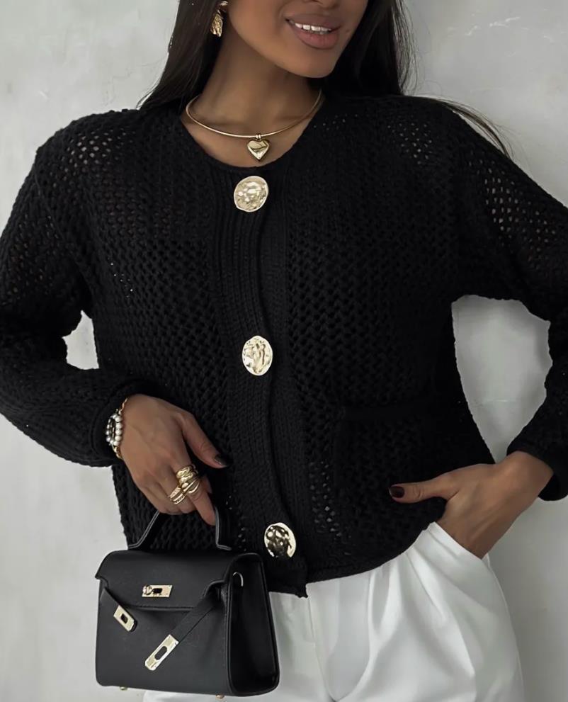 24 modelos BB欧美跨境 ropa de mujer cárdigan de punto grueso de manga larga con botones sencillos