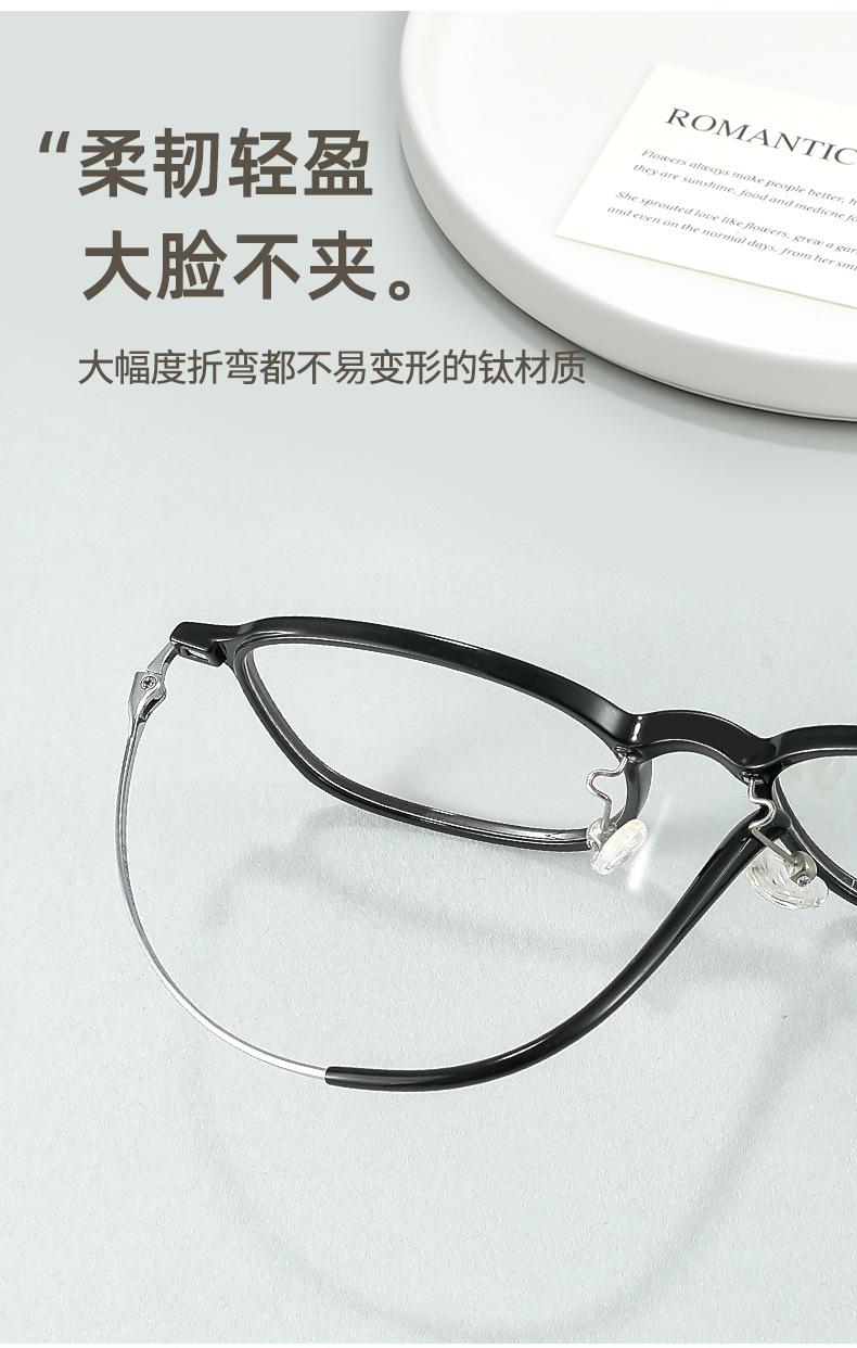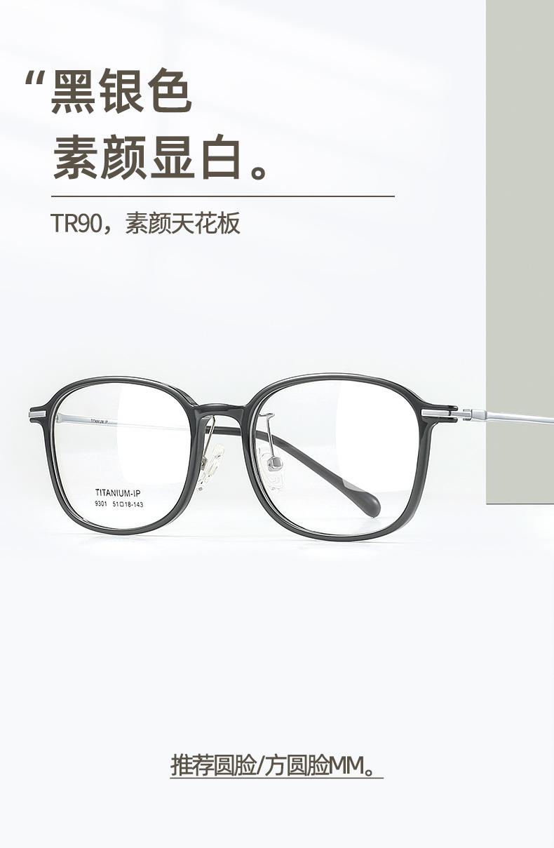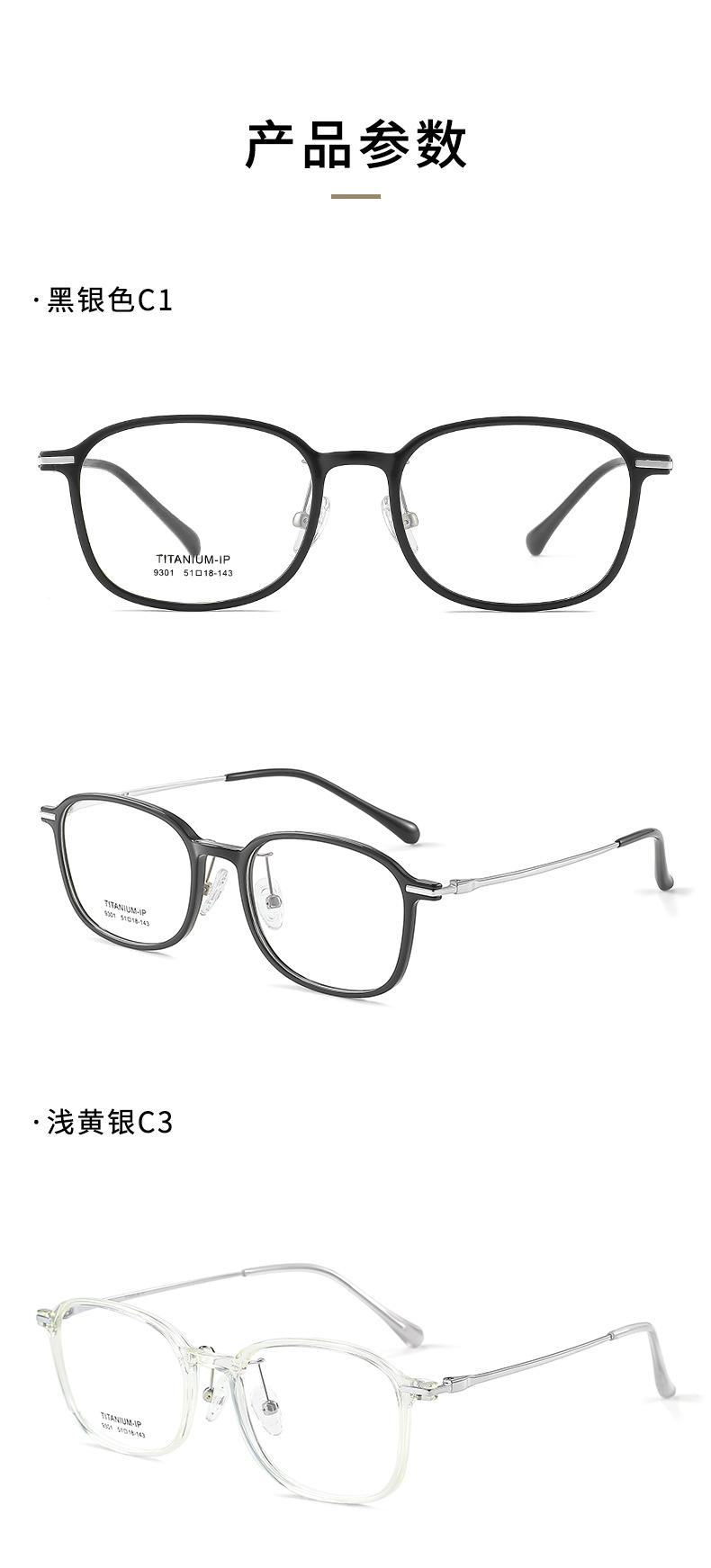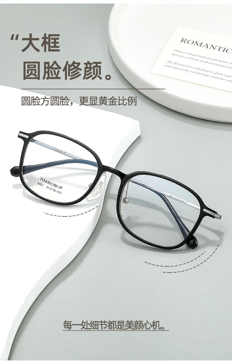 Marco de Espejo Ovalado Retro Marco Pequeño Ultraligero Titanio Puro Espejo Plano 9301 Negro Gafas para Alta Miopía Venta al por Mayor Danyang