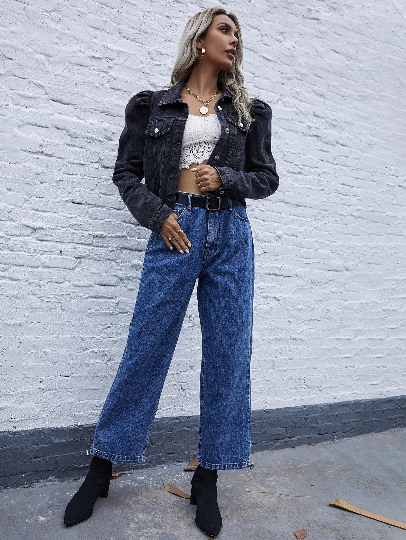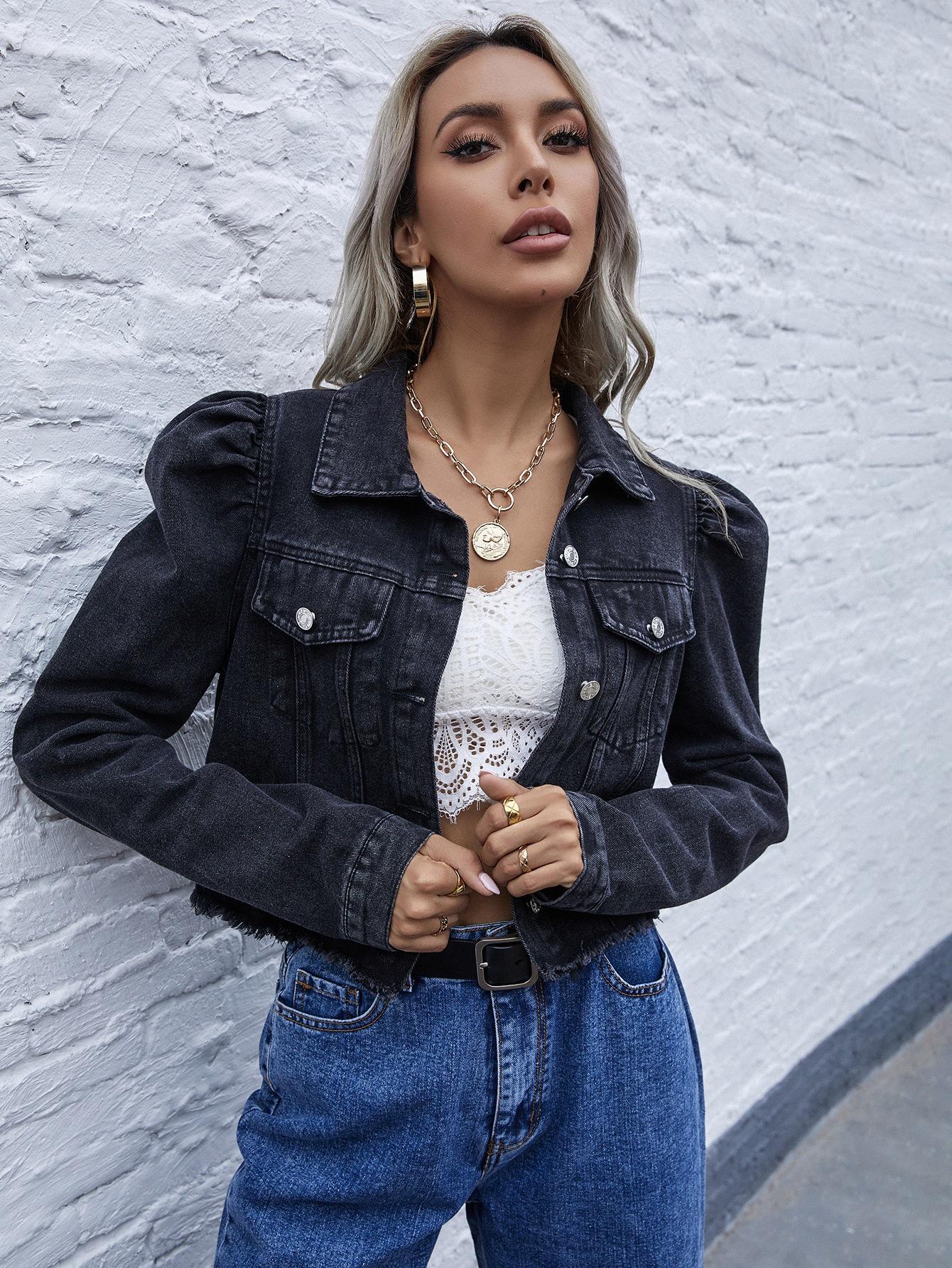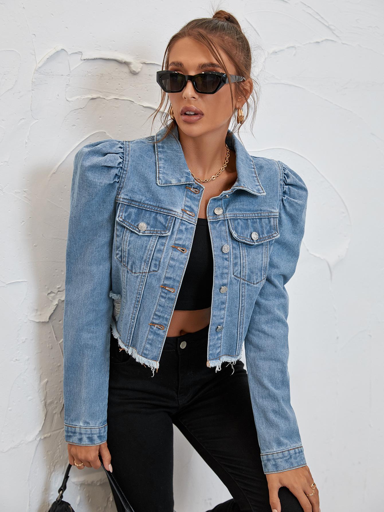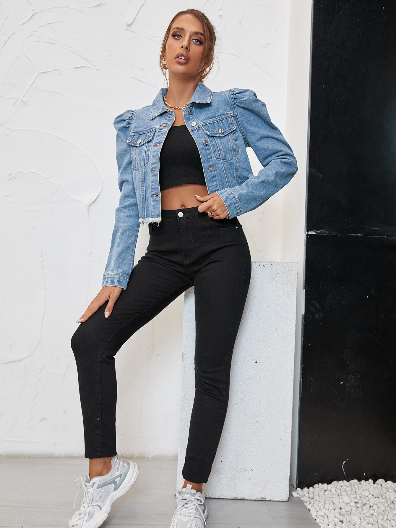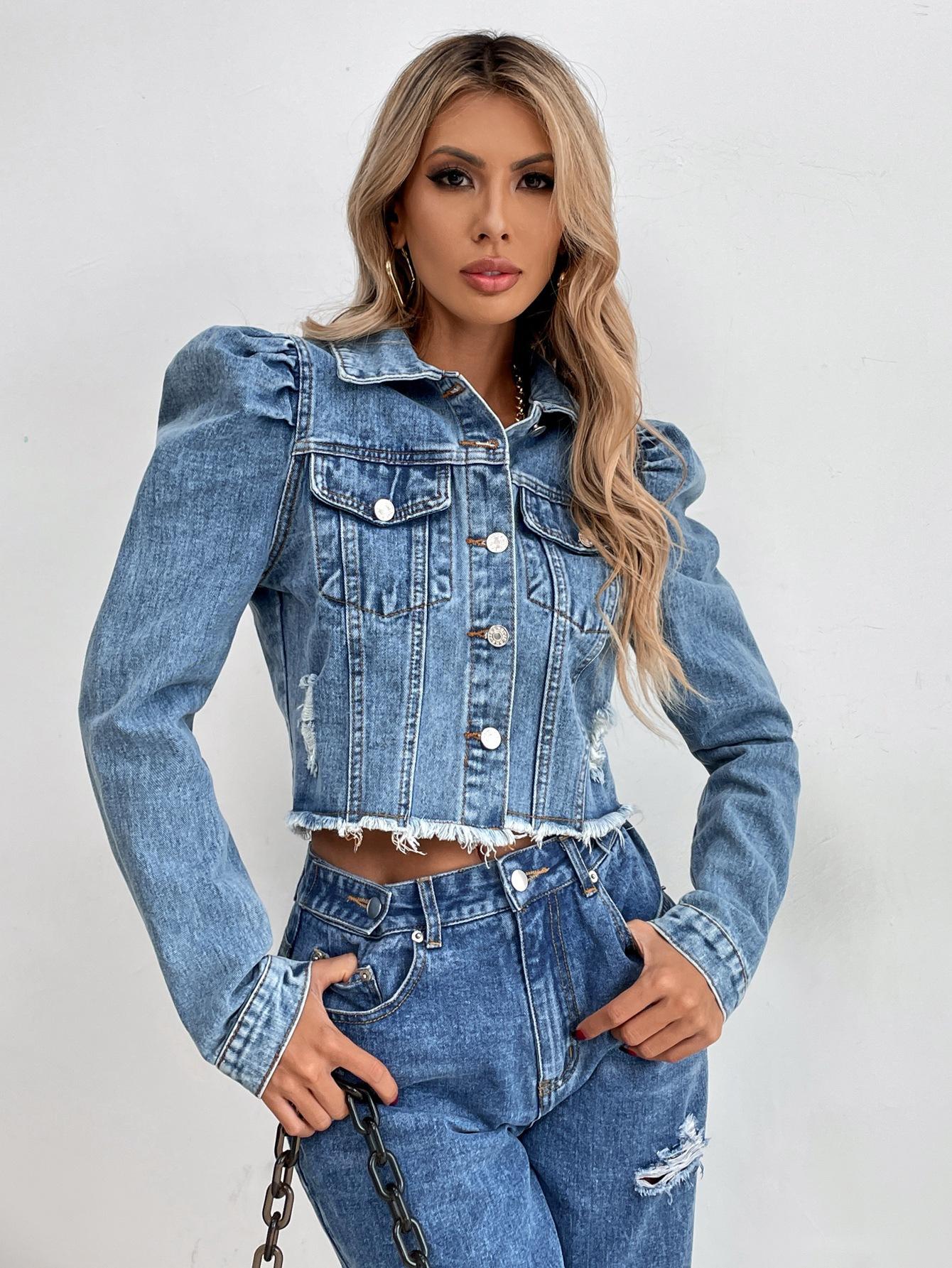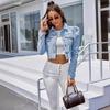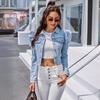 Moda Femenina Transfronteriza de Amazon Estilo Europeo y Americano Solapa Denim Casual Chaqueta Corta