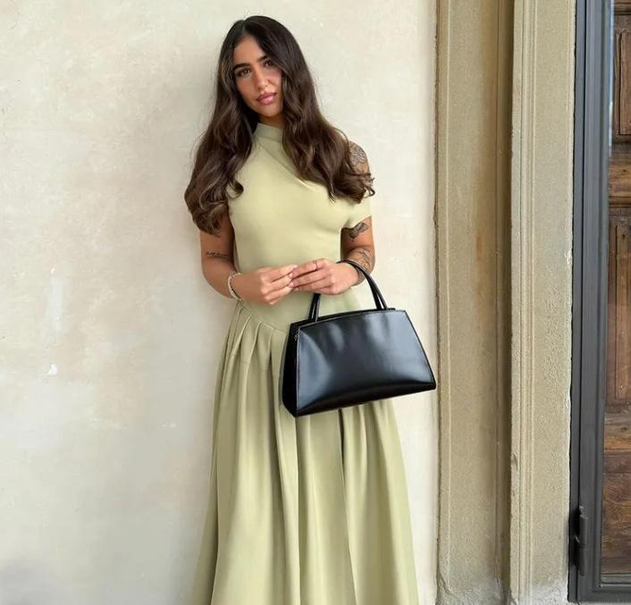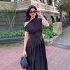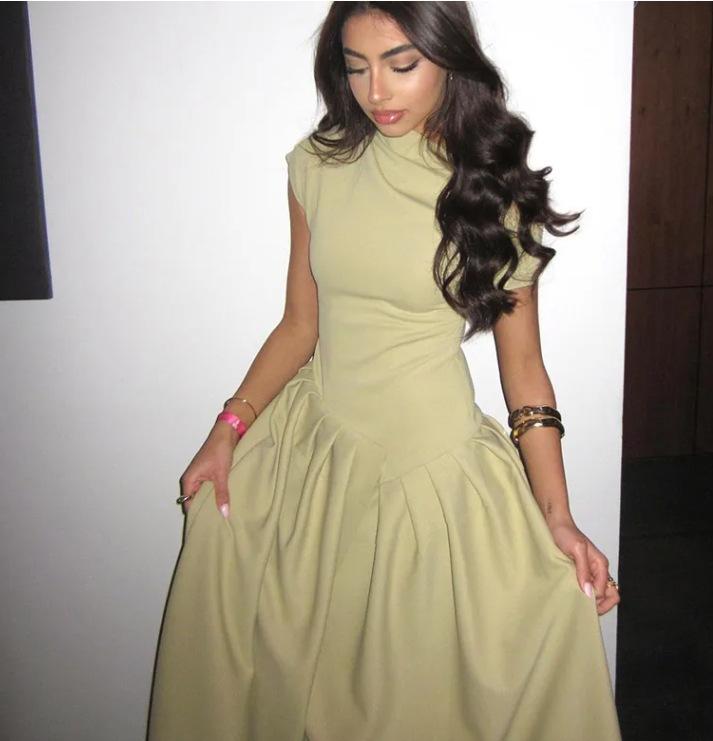 Vestido Sexy de Temperamento Elegante con Cuello Bardot de Color Sólido Plisado Ajustado Vestido Largo de Primavera Verano Europeo y Americano para Mujer
