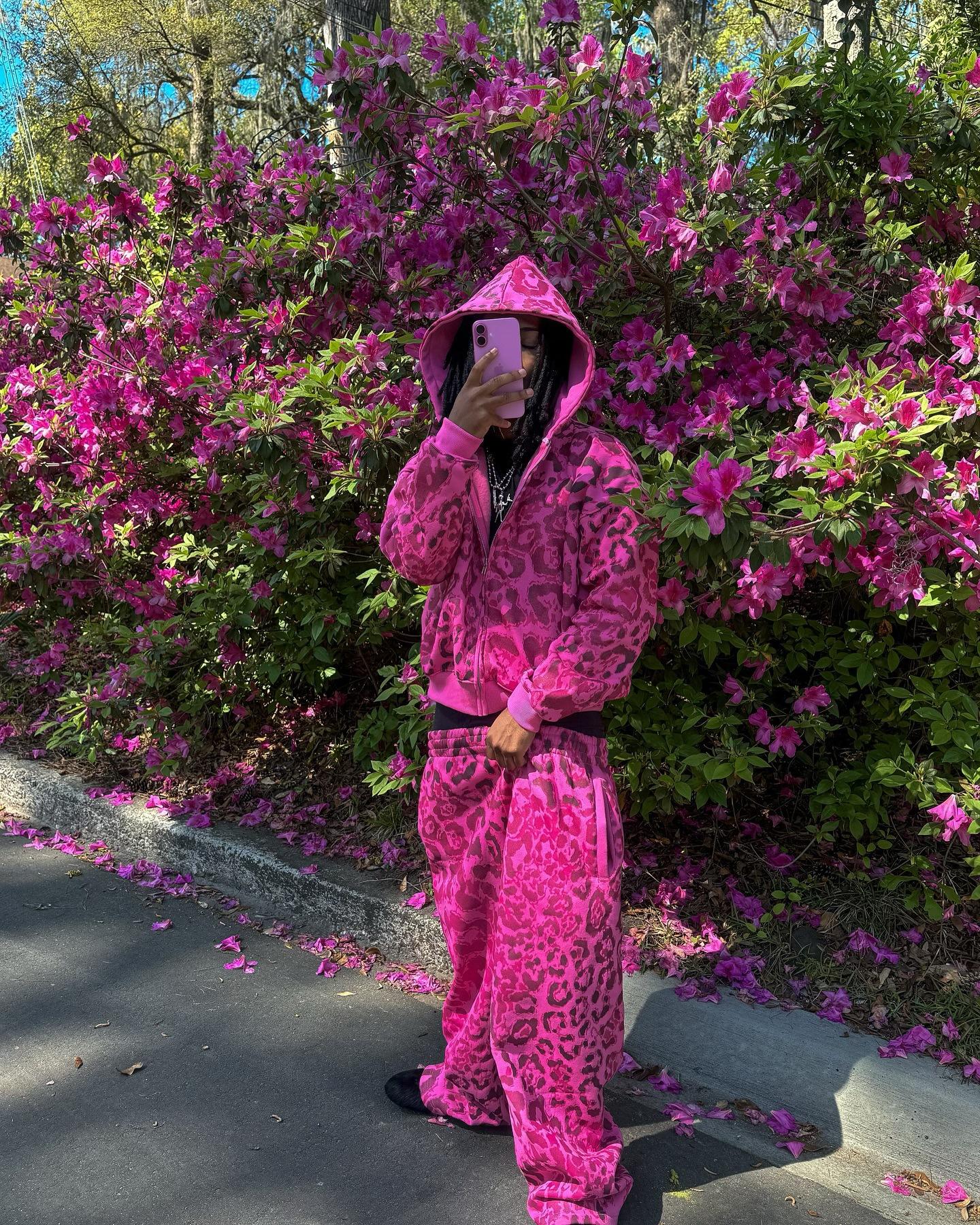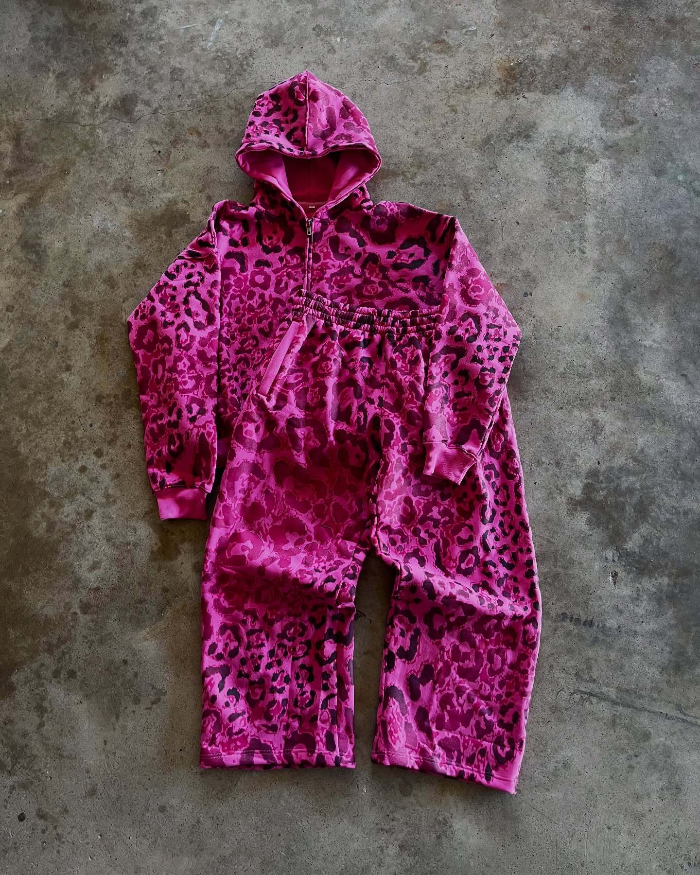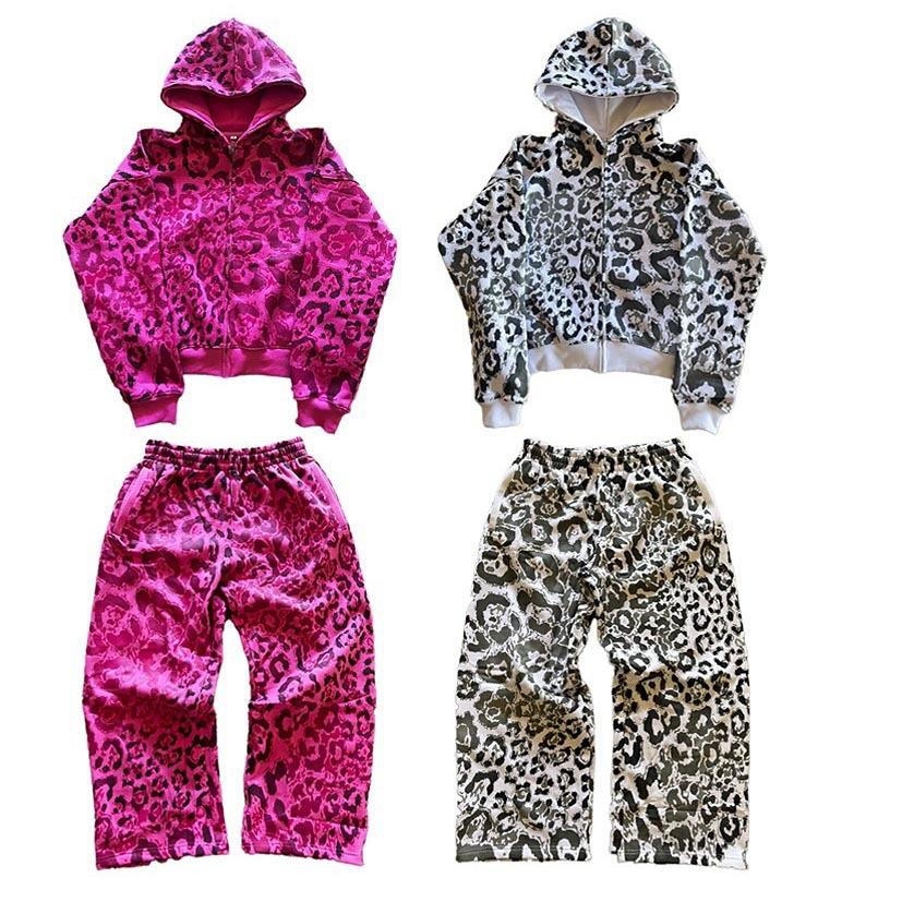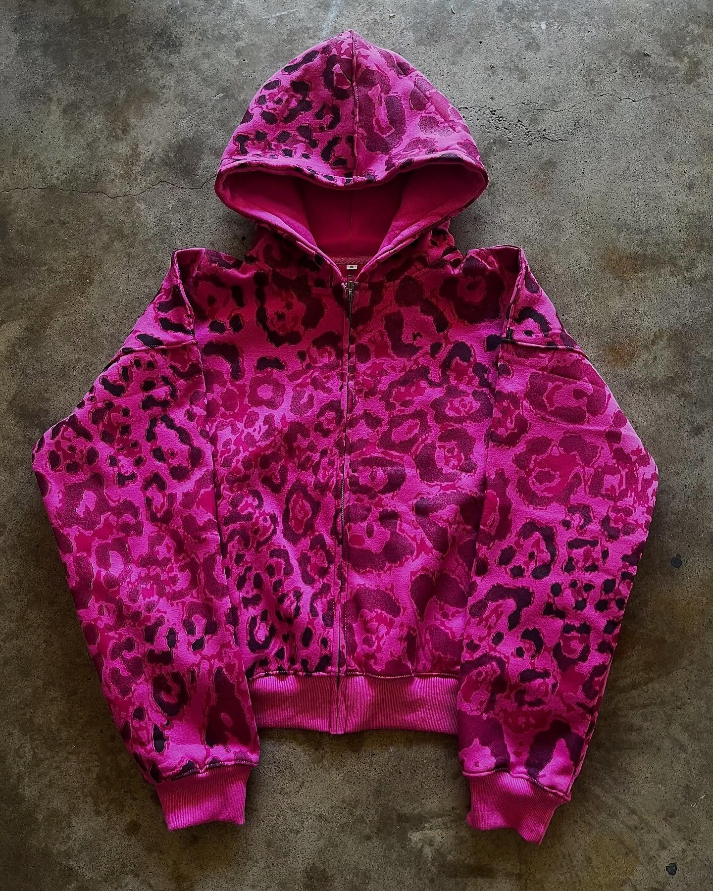 Cárdigan con capucha y estampado de leopardo para mujer, sudadera holgada con personalidad, pantalones deportivos, otoño e invierno, 2025, Amazon, Europa y América