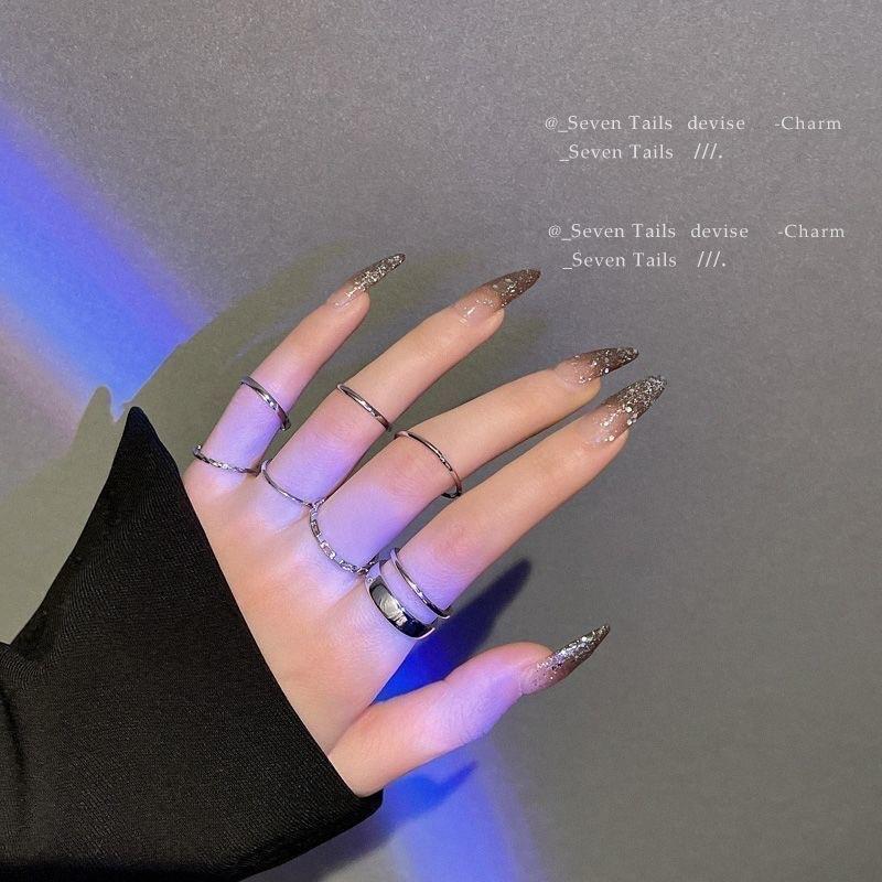 Eight-piece silver ring set
