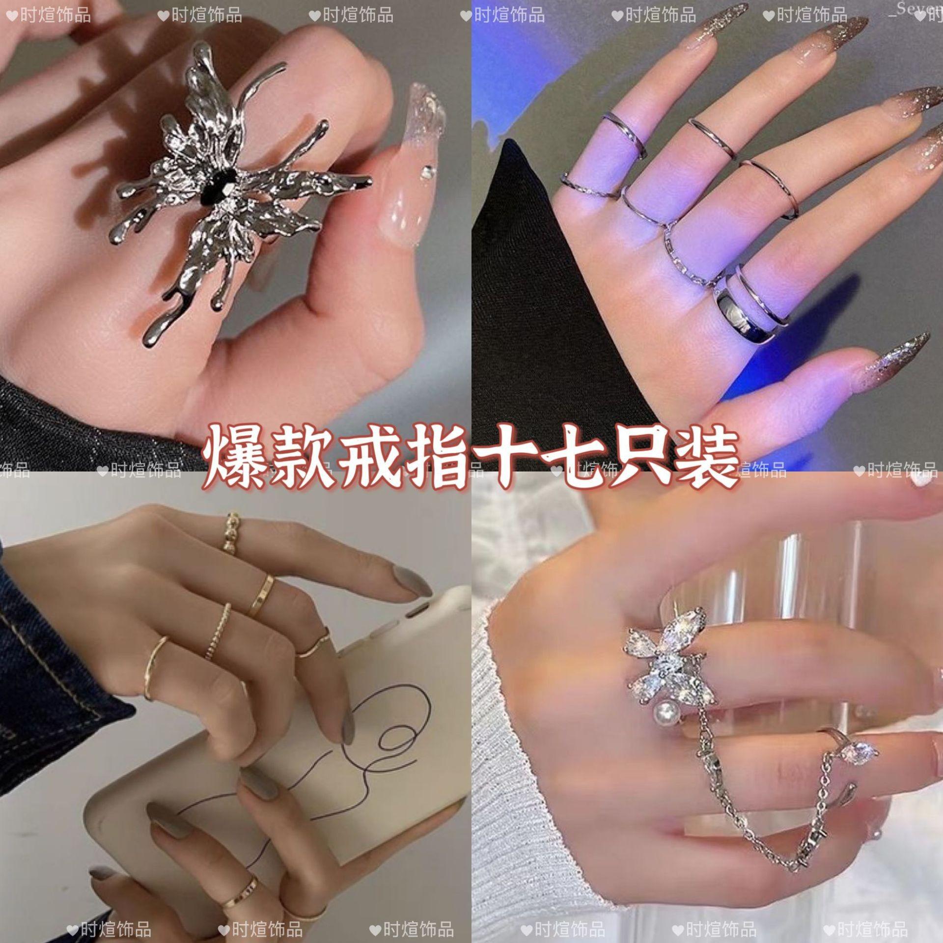 Popular seventeen-pack, Popular seventeen-piece gift box, Black diamond liquid butterfly ring [ml-296], Eight ...