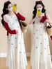 Ropa de Maternidad 2025 Nueva Moda de Verano Estilo Vacacional Falda de Tirantes + Cárdigan de Protección Solar Vestido de Maternidad de Dos Piezas