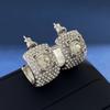 Aretes europeos y americanos de plata con diamantes completos, aretes de círculo en forma de C de diseño de lujo ligero de alta gama para mujer, nuevos aretes de cobre