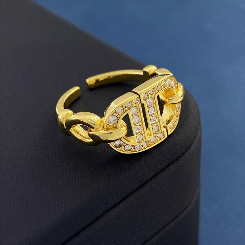 Anillo CD versátil de moda Accesorios de moda de celebridad de Internet Anillo índice abierto con letra de diamantes completos Anillo de pareja de diamantes
