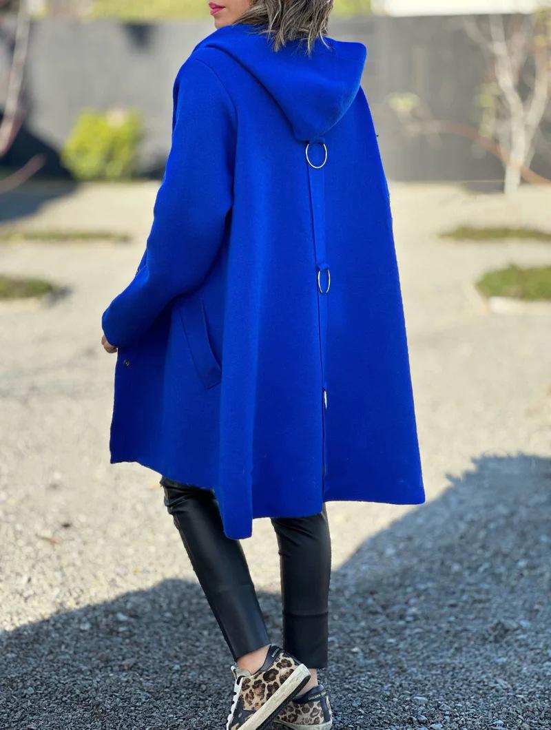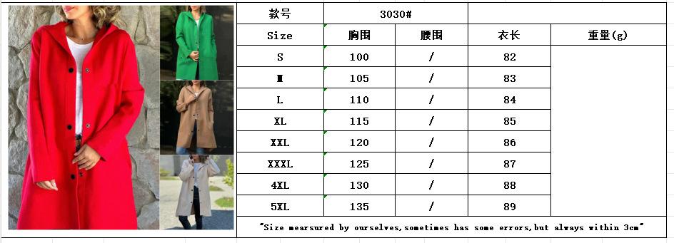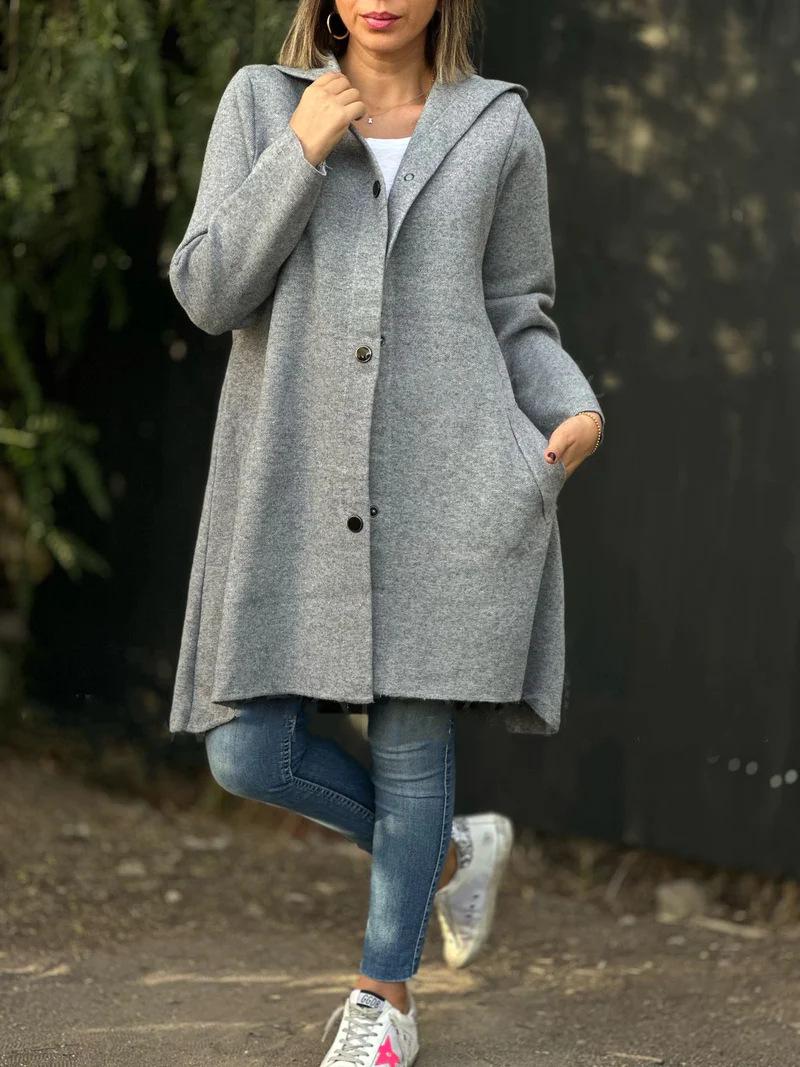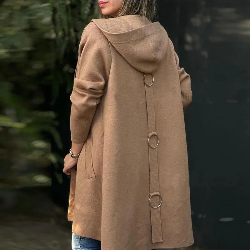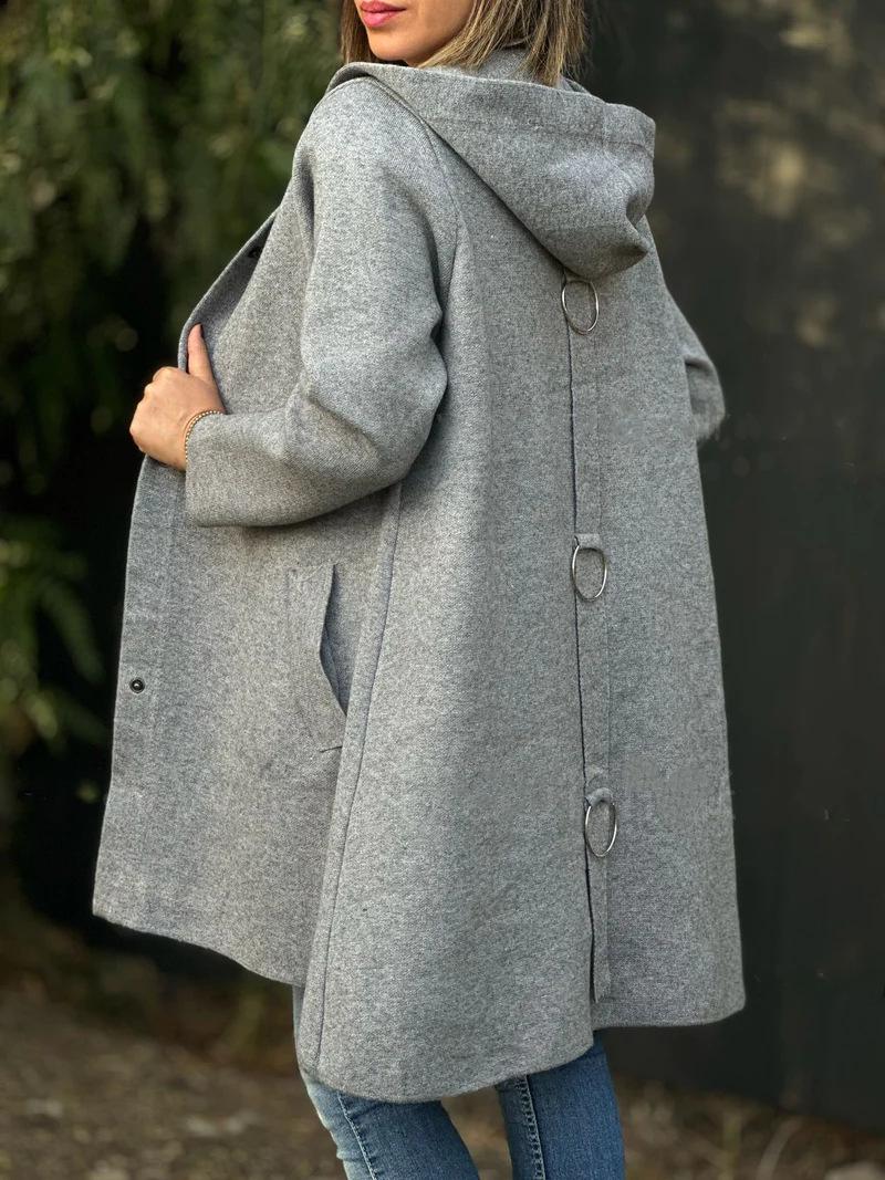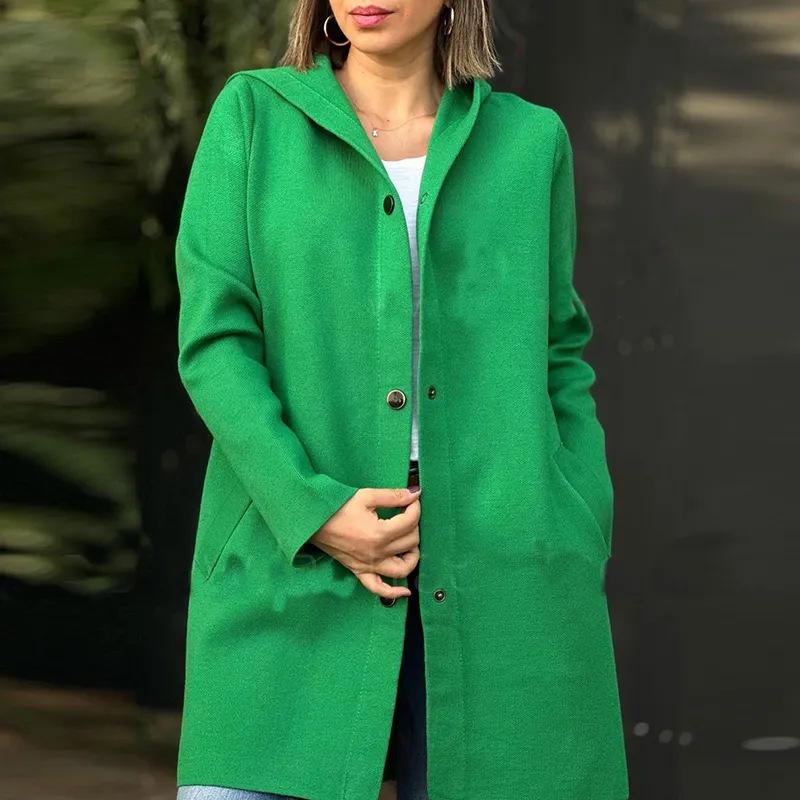 Europeo y Americano Transfronterizo 2024 Otoño/Invierno Nuevos Productos AliExpress Moda Nuevo Abrigo de Lana de Color Sólido de Manga Larga con Capucha Venta al por Mayor