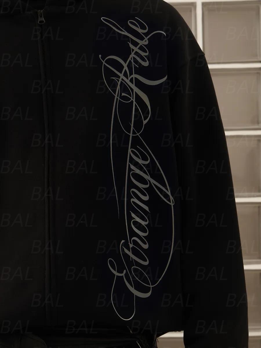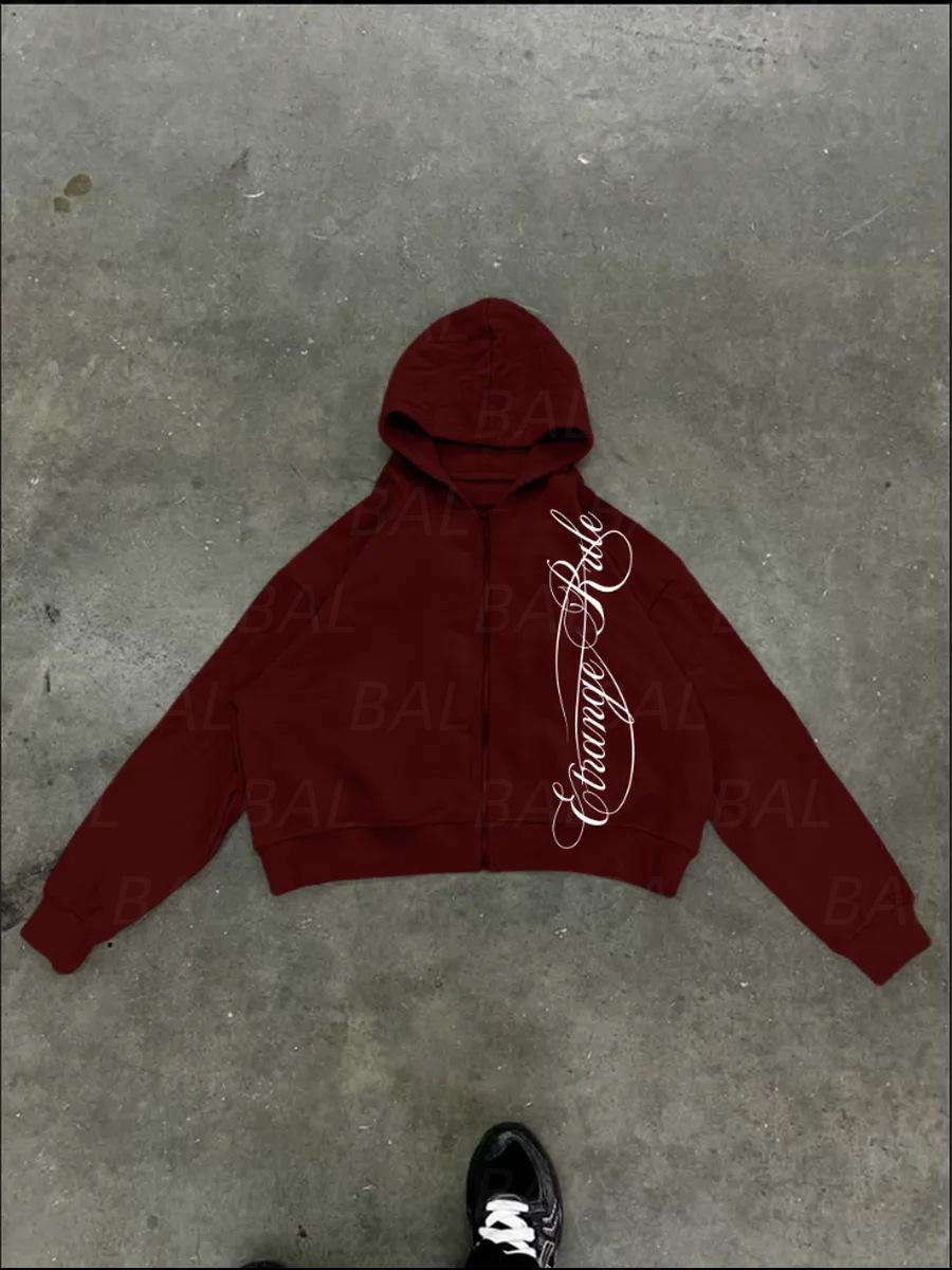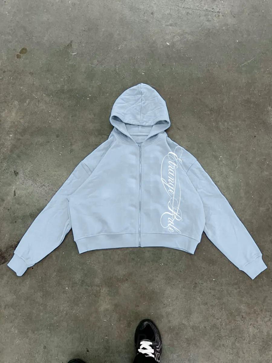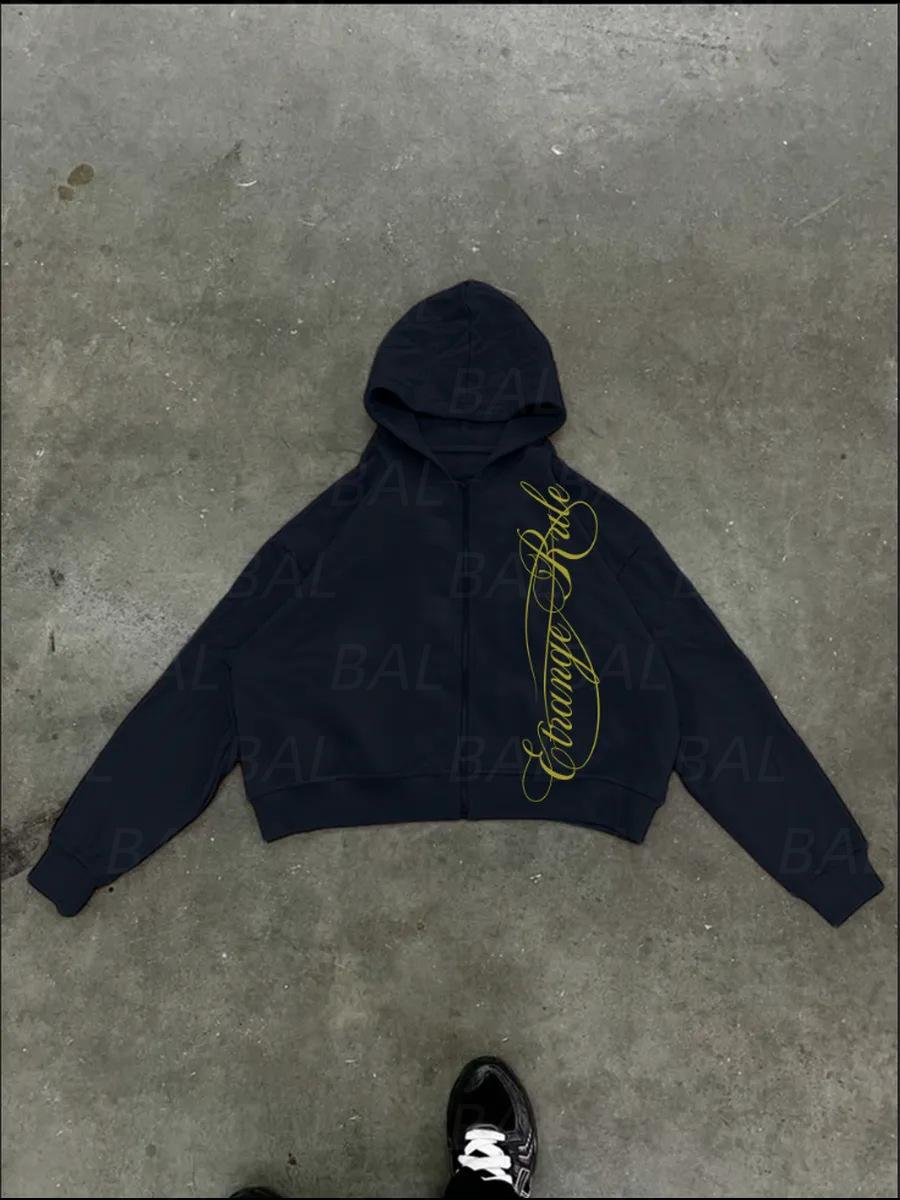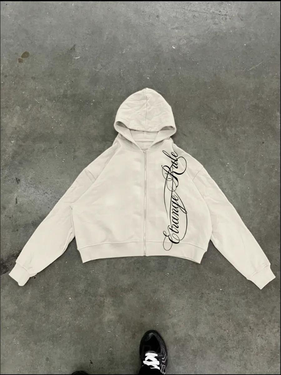 Amazon 2025 Otoño/Invierno Nuevo Sudadera con Capucha y Cremallera Estampado Personalidad Calle Suelta Retro Chaqueta Sudadera