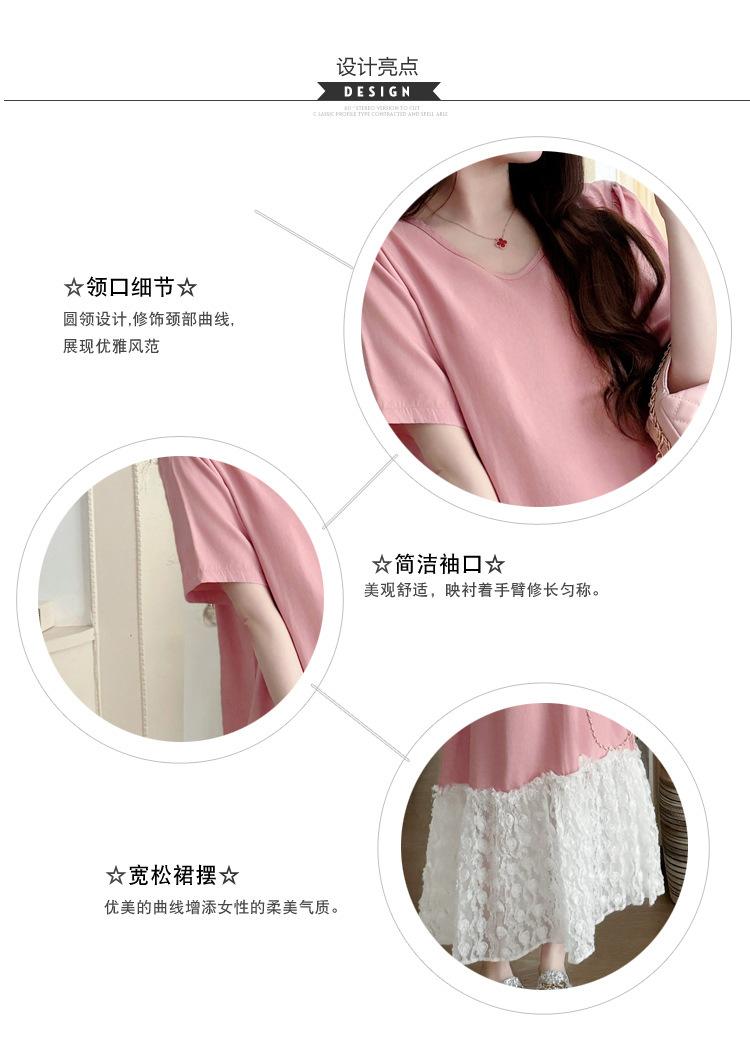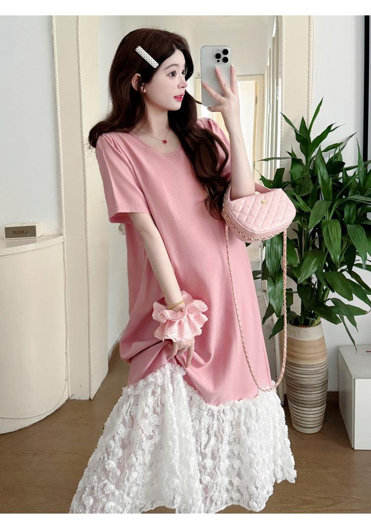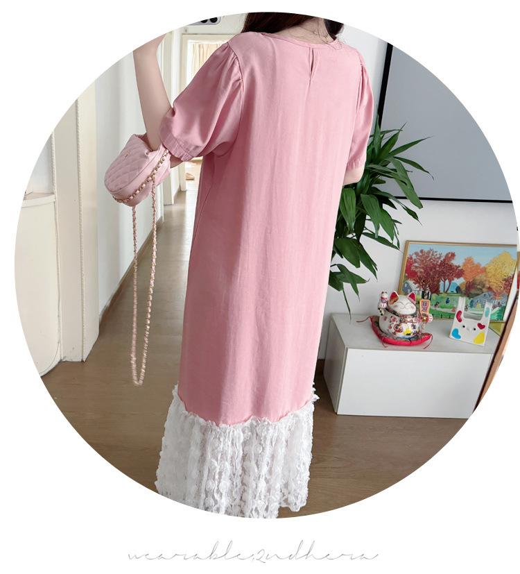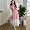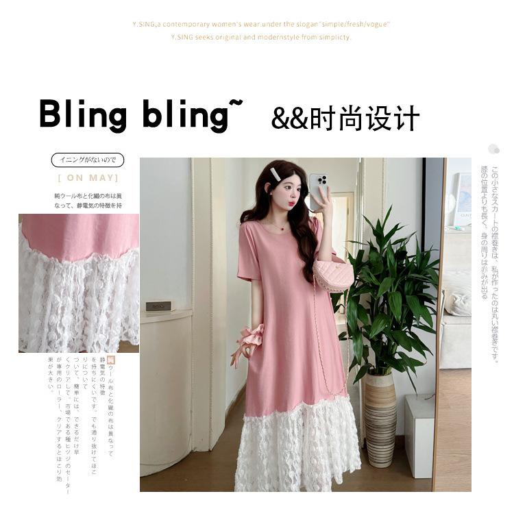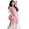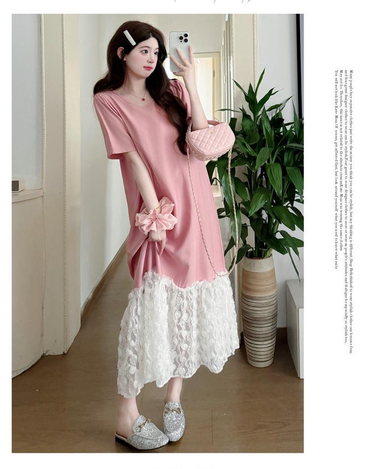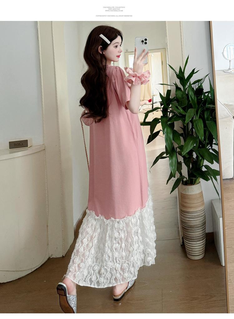 Ropa de Maternidad 2025 Nuevo Estilo de Verano Dulce Rosa Francés Encaje Delicado Empalme Talla Grande Vestido de Maternidad