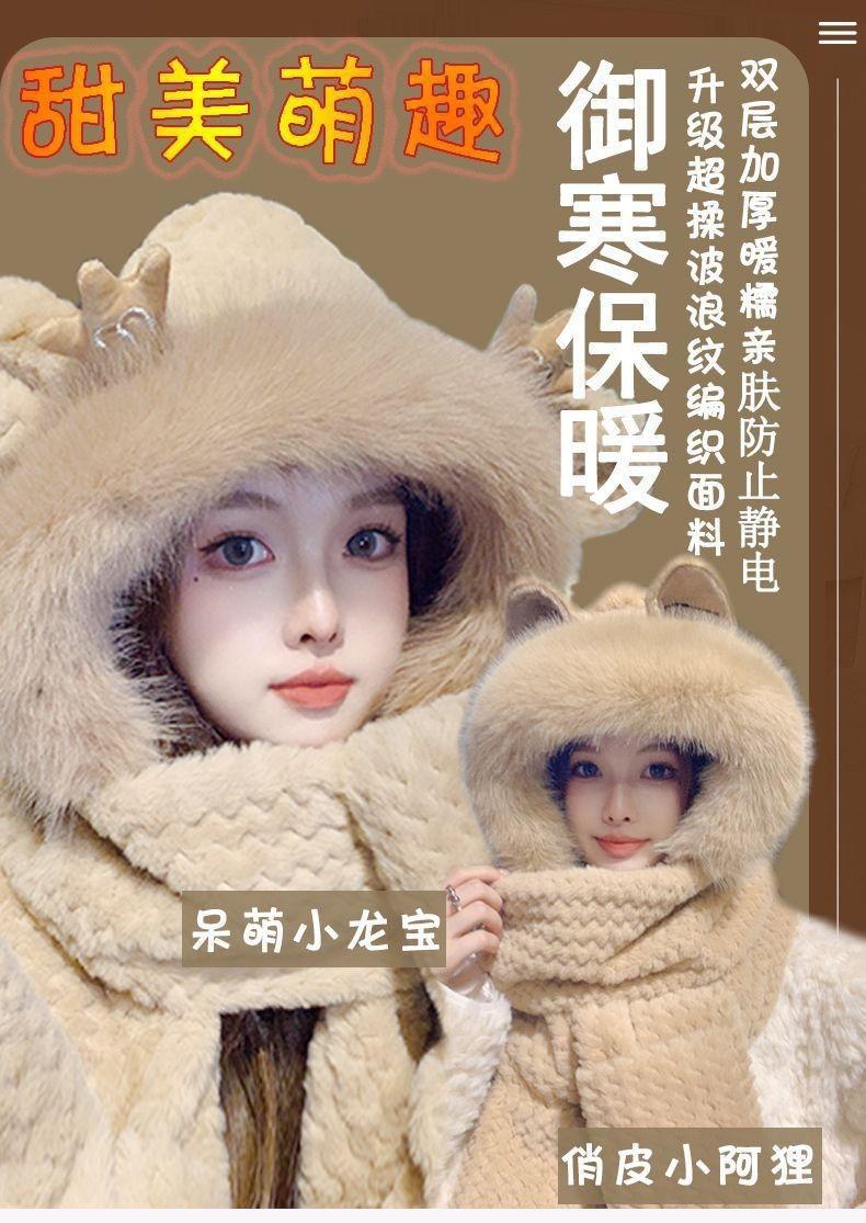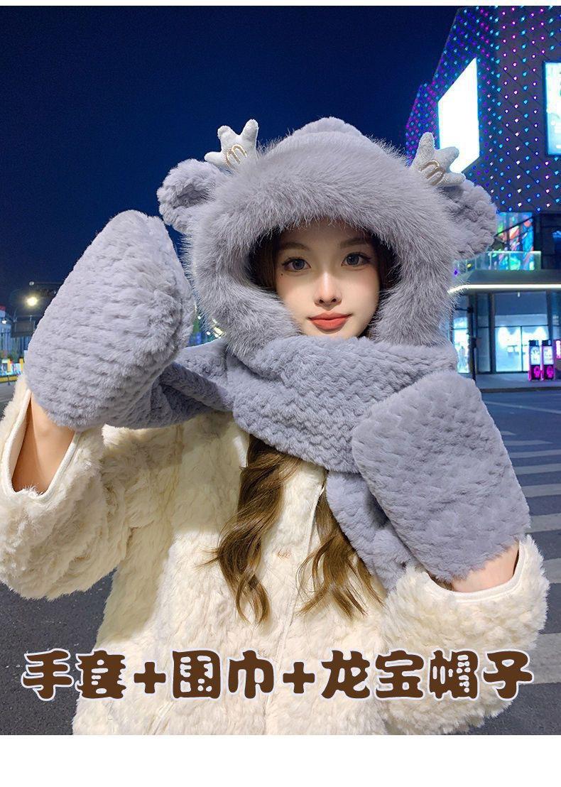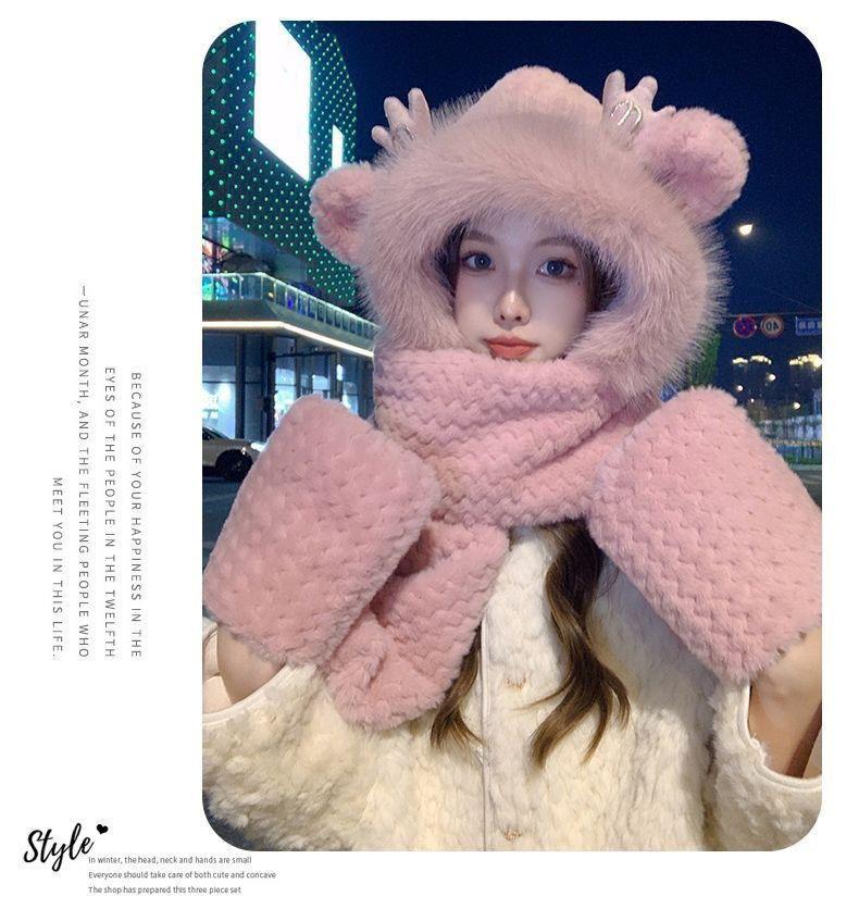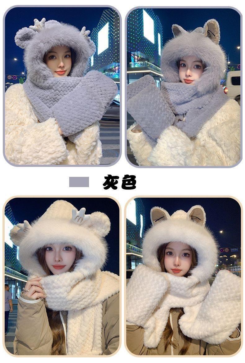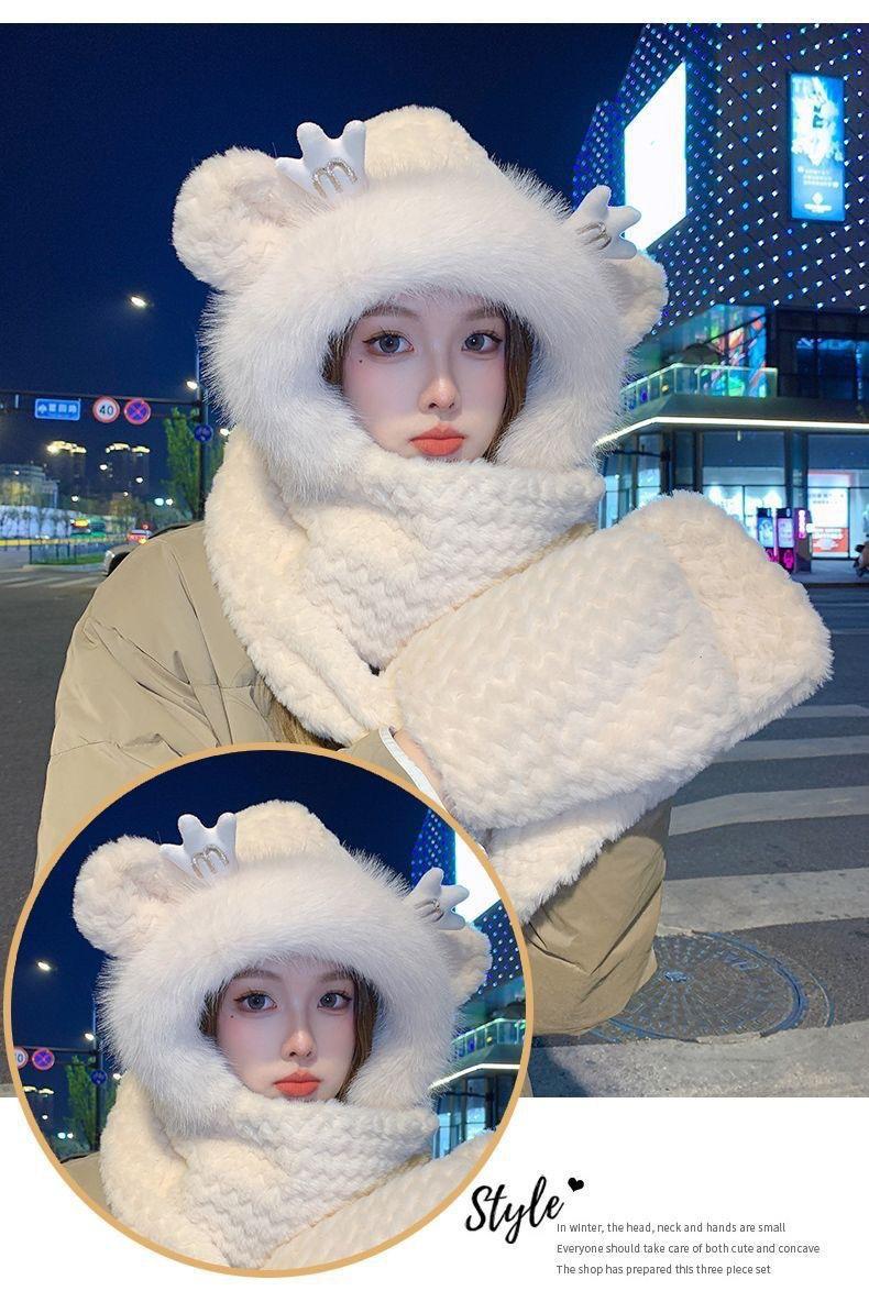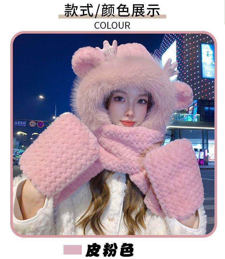 Gorro de Invierno para Mujer Bufanda de Una Pieza Set de Tres Piezas de Felpa Protección contra el Frío para Exterior Ciclismo Forrado de Felpa Grueso Cálido Protección para las Orejas Gorro Moderno