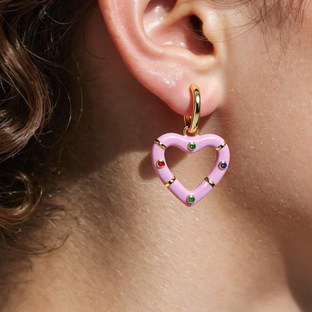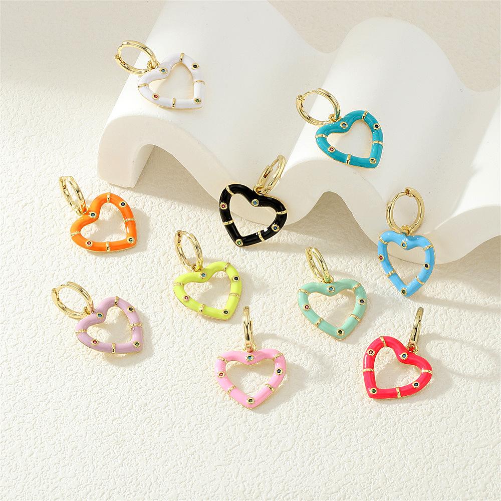 Aretes Transfronterizos Coloridos con Gota de Aceite en Forma de Corazón Europeos y Americanos Retro Nicho Temperamento Amor Aretes Personalizados Aretes de Moda de Lujo Ligero