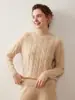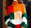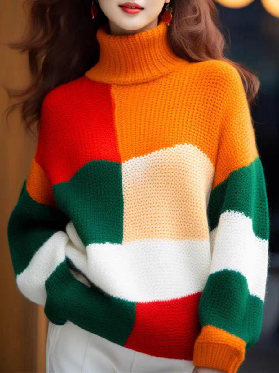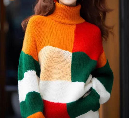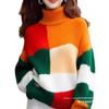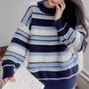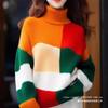Otoño e Invierno Nuevo Talla Grande Ropa de Punto para Mujer Jersey Top de Cuello Alto Rayado en Contraste Grueso Estilo Dulce y Delicado Suéter
