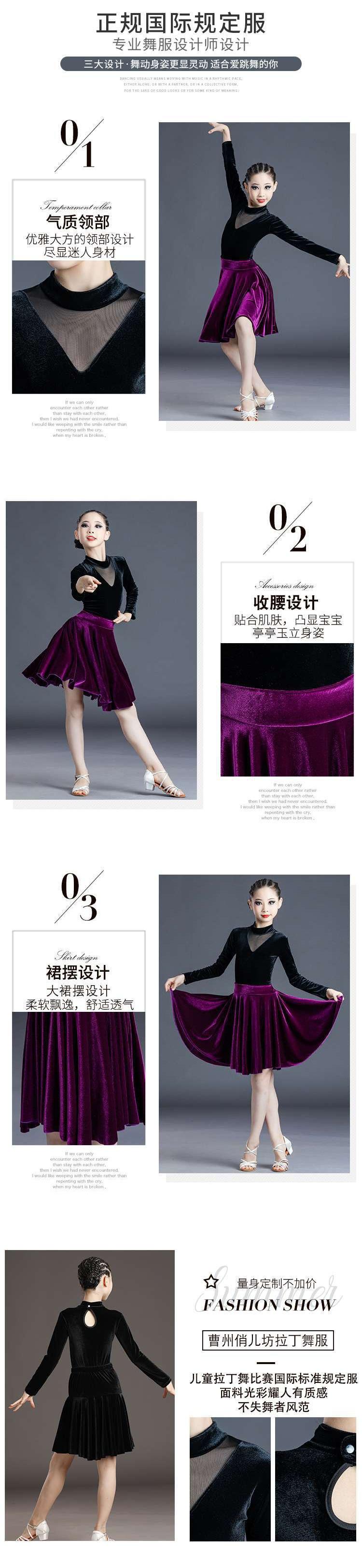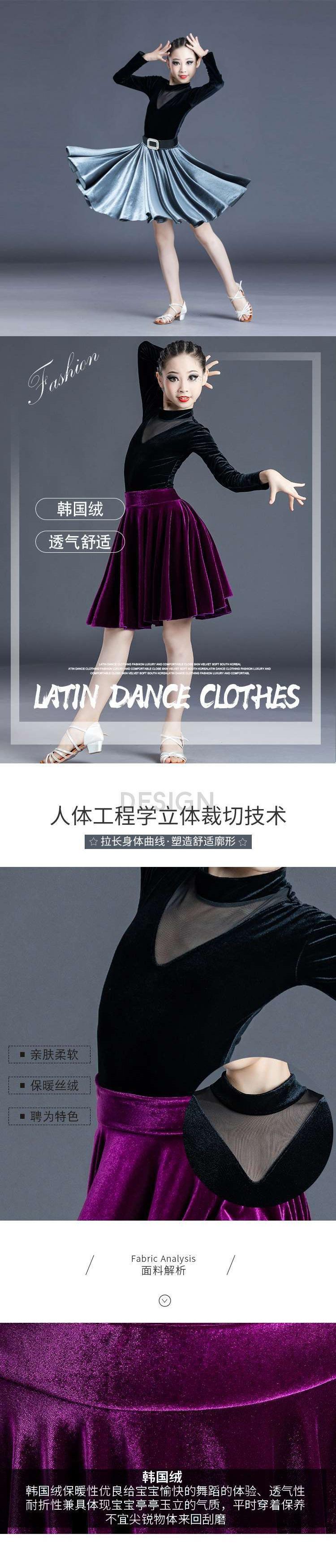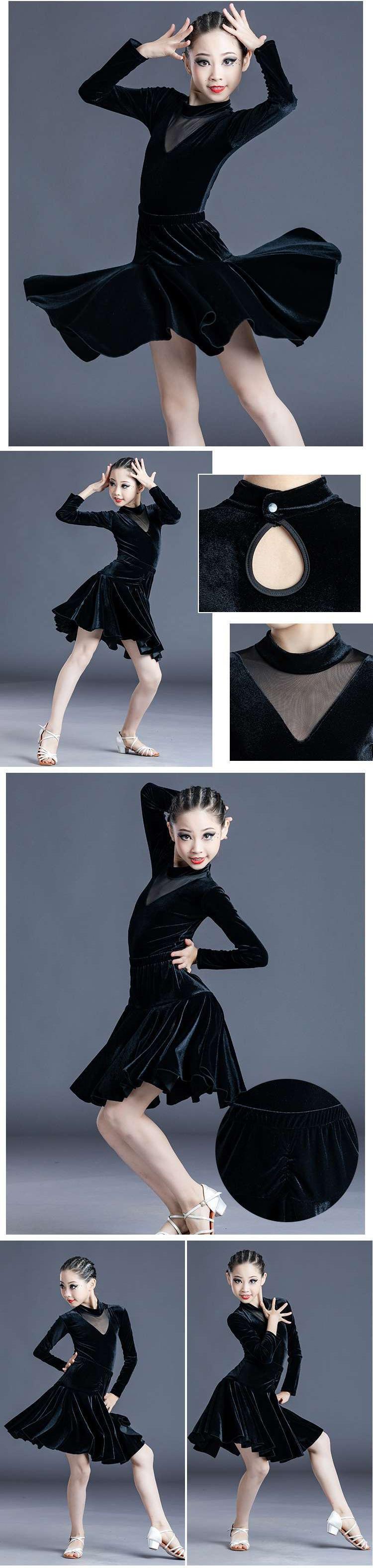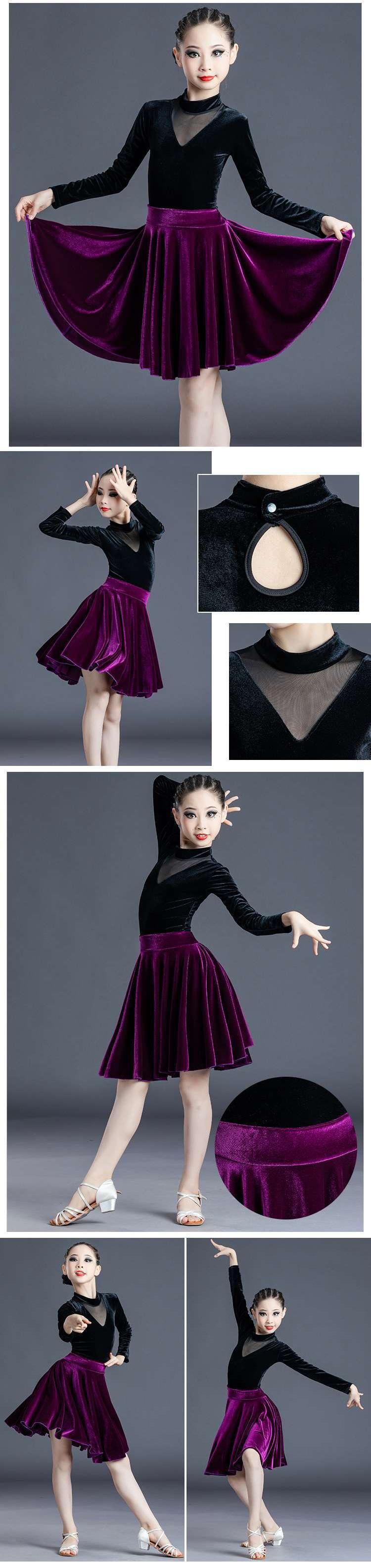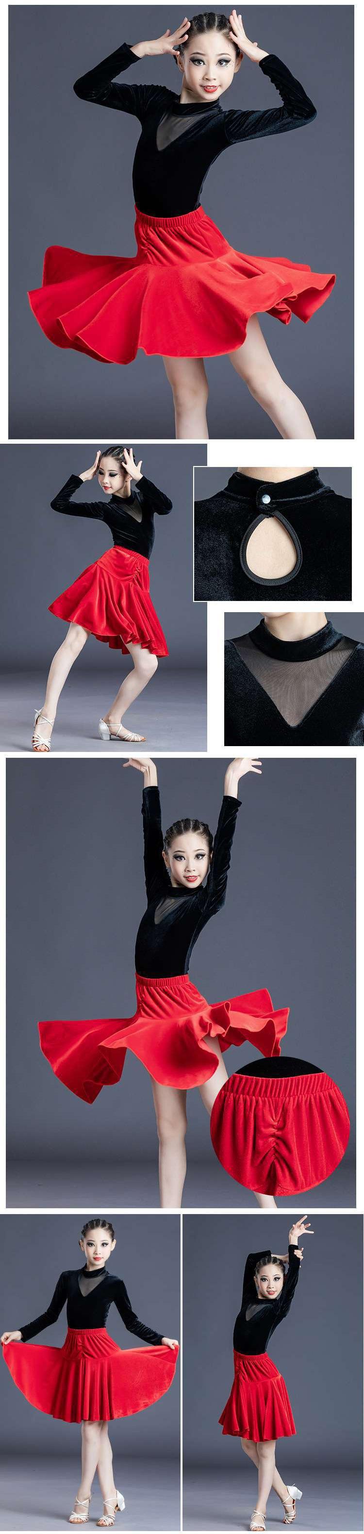 Ropa de Baile Latino para Mujer y Niña de Alta Gama Falda de Baile Latino Ropa de Práctica Otoño e Invierno Ropa de Competición para Actuación Latina de Manga Larga para Niña