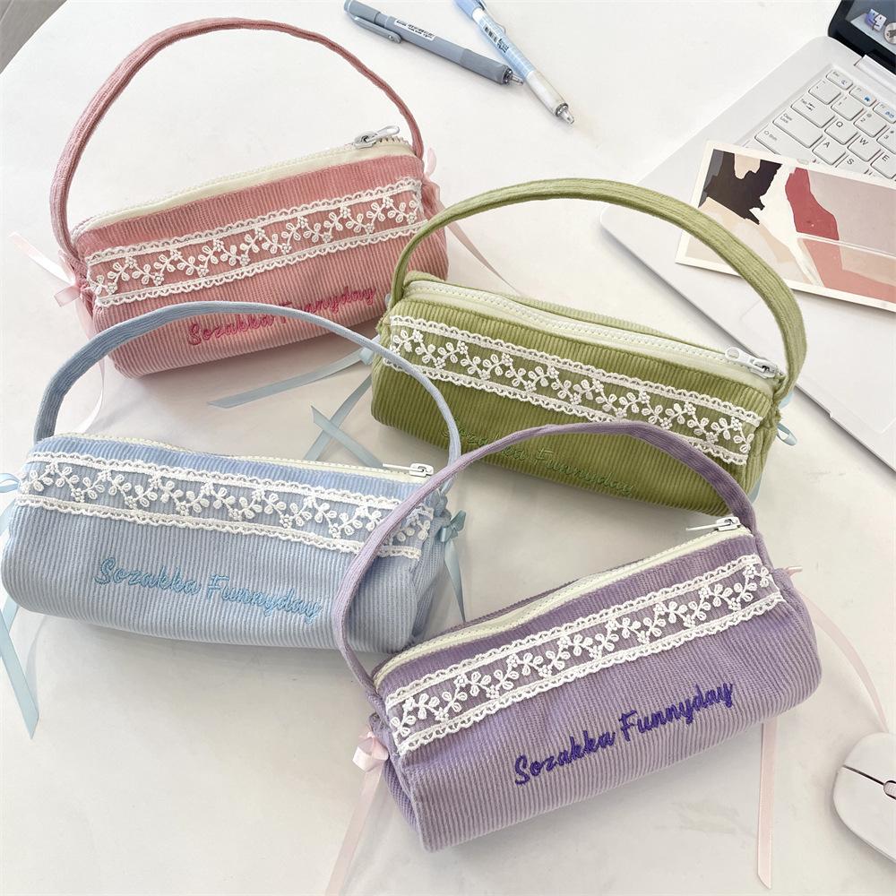 53273 Estuche de Lápices de Mano, Soporte para Bolígrafos Simple y Fresco, Bolsa de Cosméticos de Papelería para Estudiantes, Estuche de Lápices de Papelería de Tela de Gran Capacidad