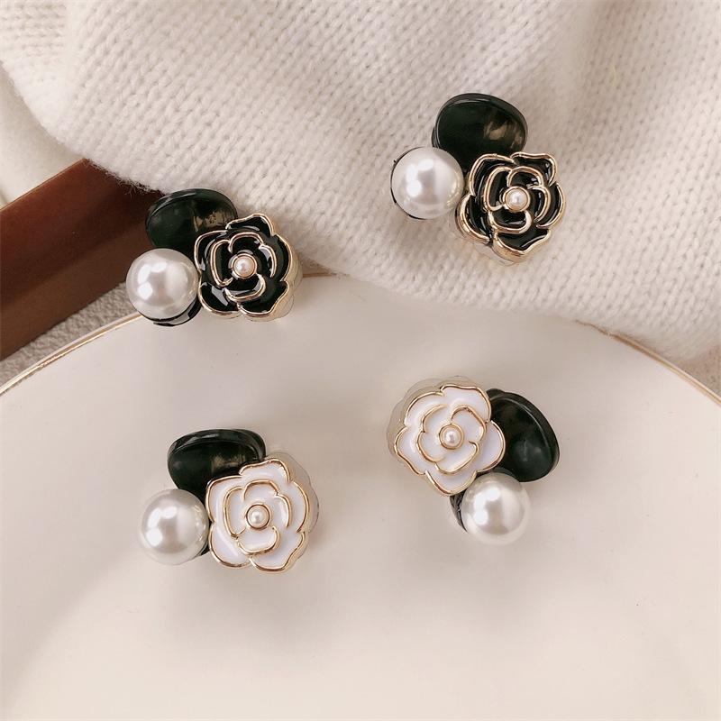 Sencillo clip pequeño de camelia y perla, horquilla lateral, parte trasera de la cabeza, de alta calidad, para cabello suelto, flequillo, horquilla, tocado