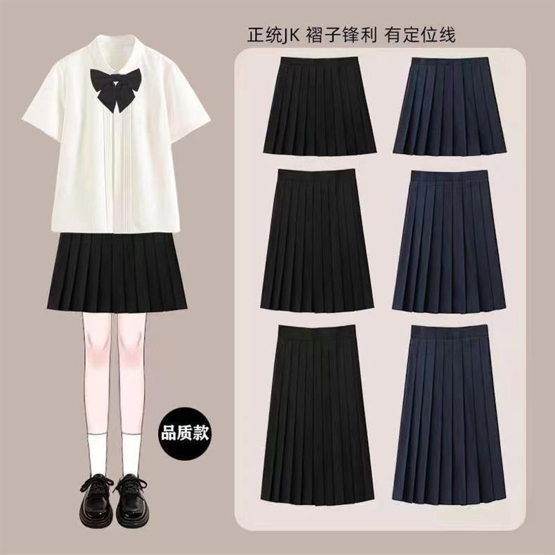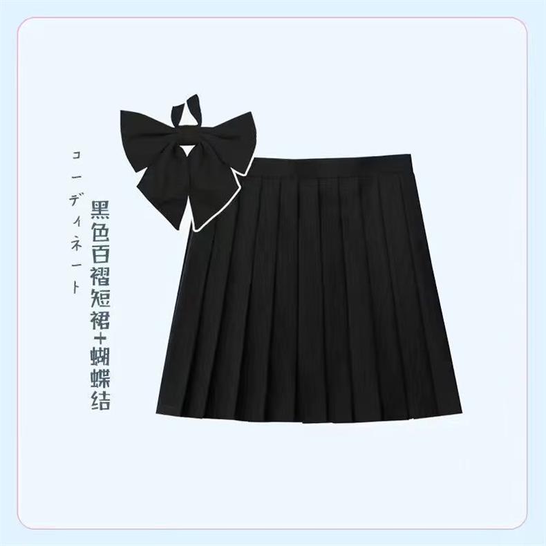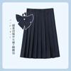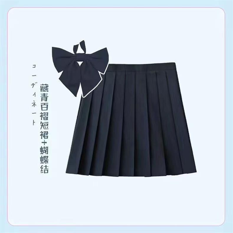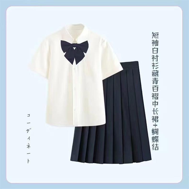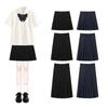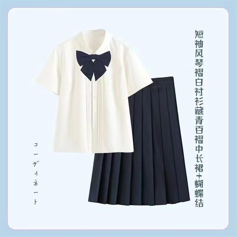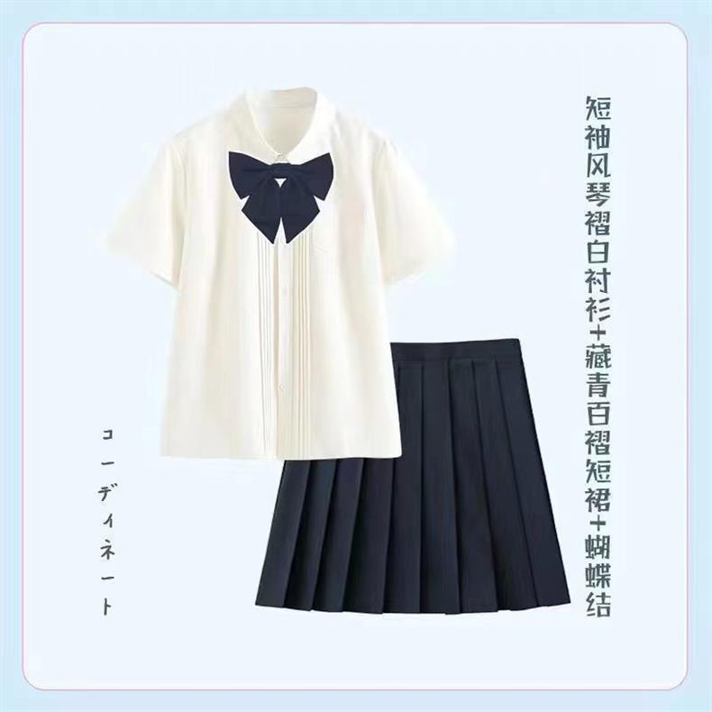 suit organ pleated short sleeve shirt navy blue short skirt bow tie