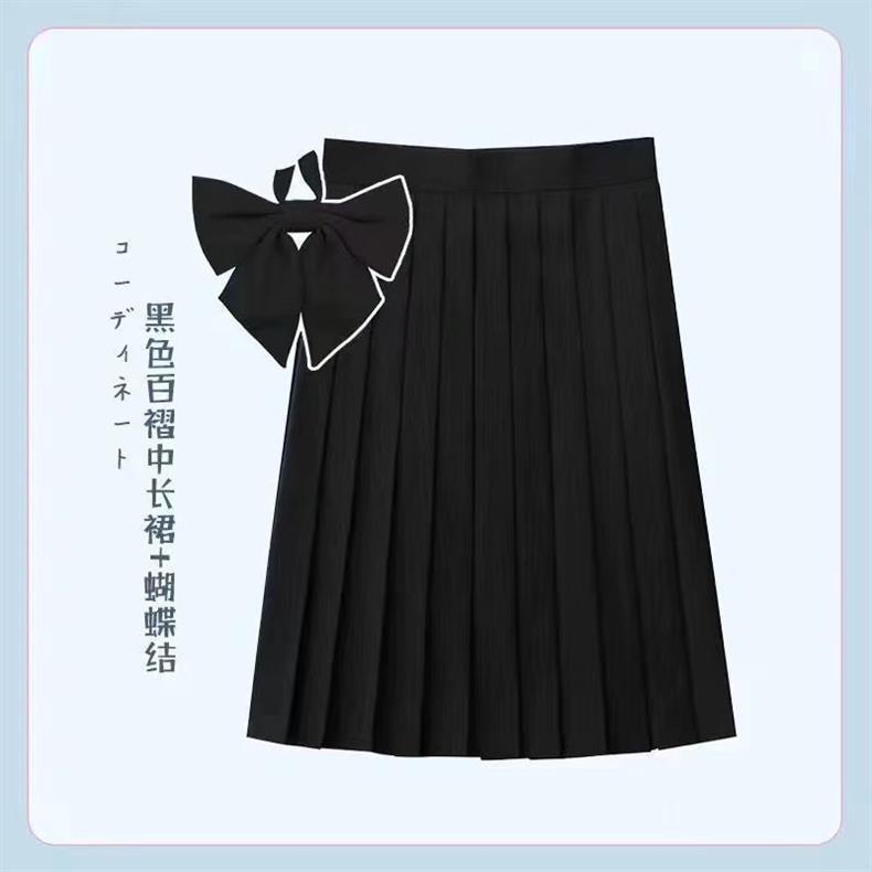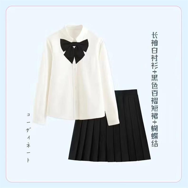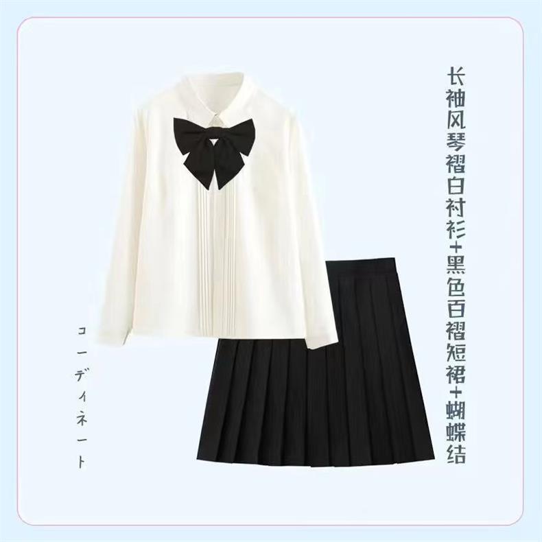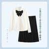suit organ pleated long sleeve shirt black mid-skirt bow tie
