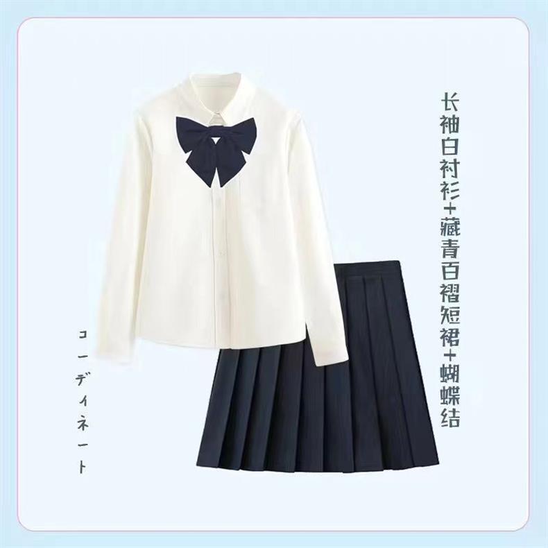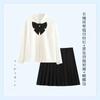 suit organ pleated long sleeve shirt navy blue short skirt bow tie