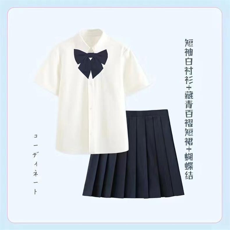 suit White Short-sleeved Navy Blue Bow-tie Skirt