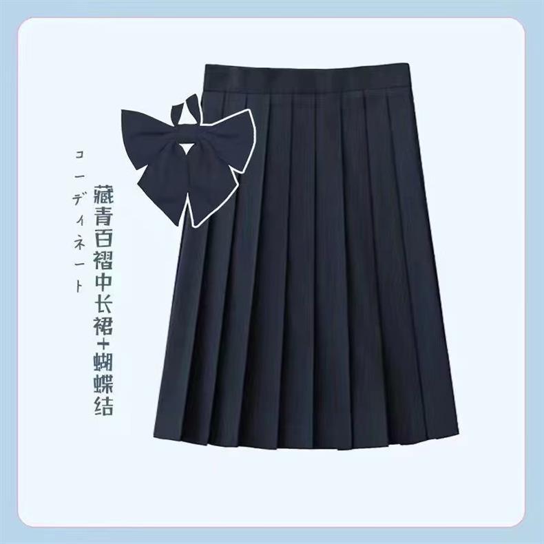 suit organ pleated long sleeve shirt navy blue mid-skirt bow tie