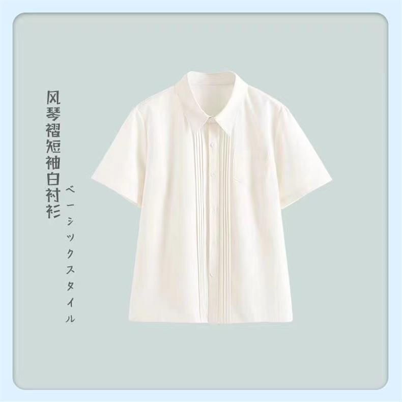Camisa Plisada de Órgano Estilo Escuela de Verano para Mujer Estilo Japonés JK Uniforme Falda Traje Estudiantes Básica Manga Corta Camisa Blanca