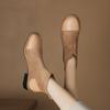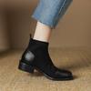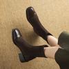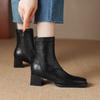 Botas de caballero cómodas de tacón bajo de talla grande para otoño e invierno para mujer, tacón cuadrado, sin cordones, punta cuadrada, suela de goma, estilo coreano, color sólido, botas de media caña para mujer