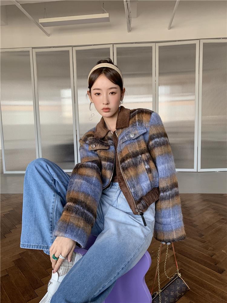 Foto Real en stock Invierno Nuevo Abrigo Corto Estilo Chanel Pequeño Chaqueta de Lana para Mujer Cárdigan Top