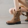 Botas de otoño e invierno de tacón medio para mujer de talla grande, suela de goma antideslizante, botas de media caña con cremallera, punta redonda para mujer, tacón cuadrado, nuevas botas Martin para mujer